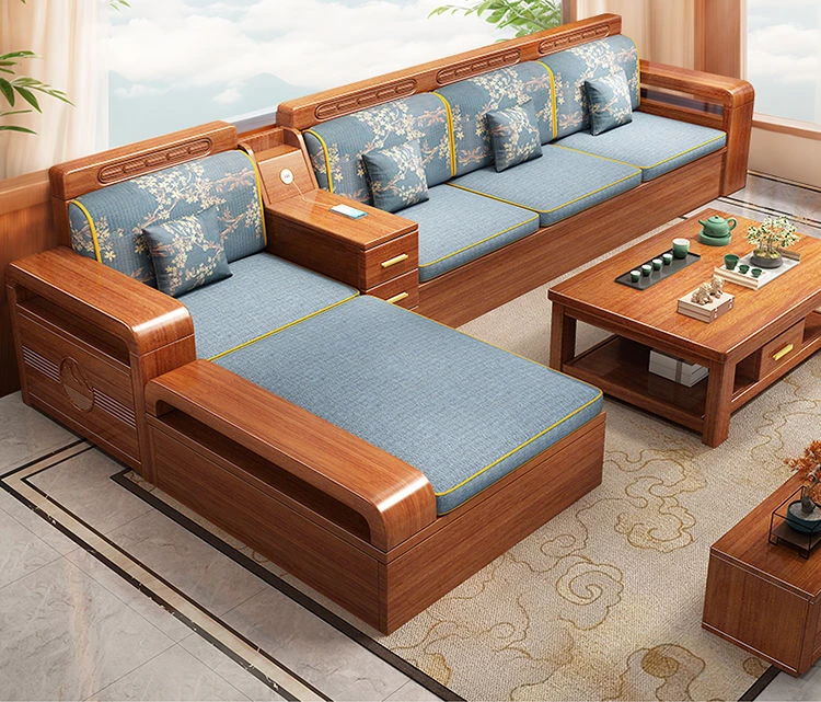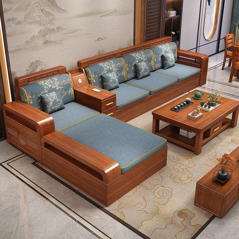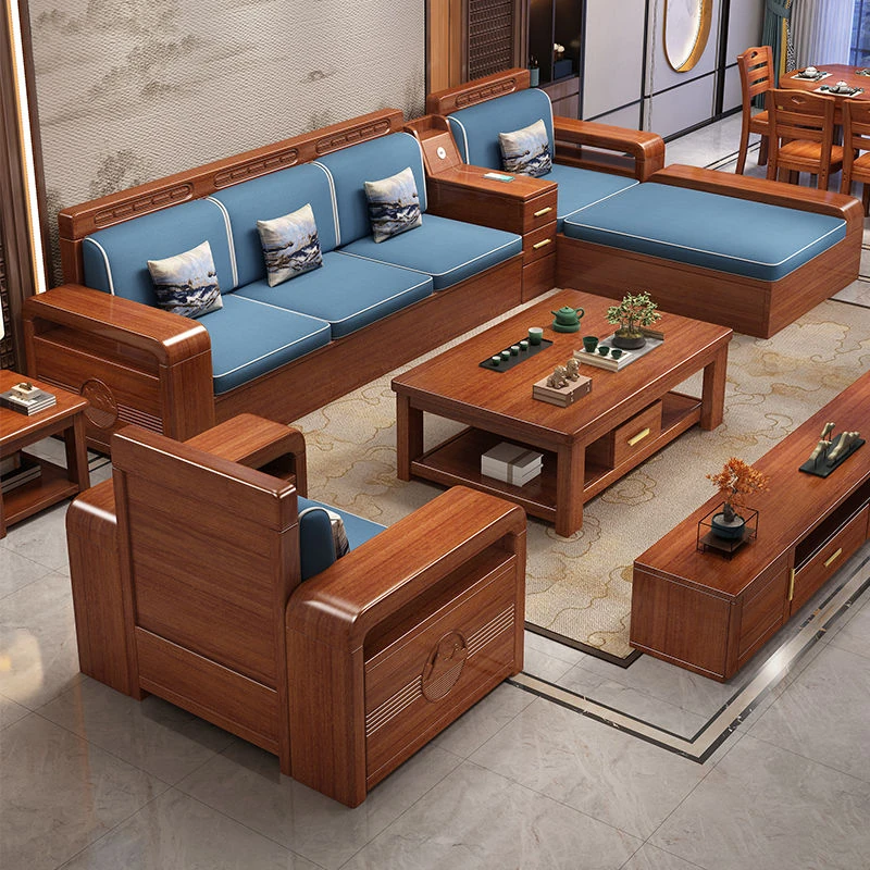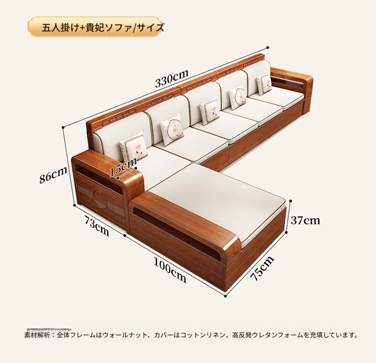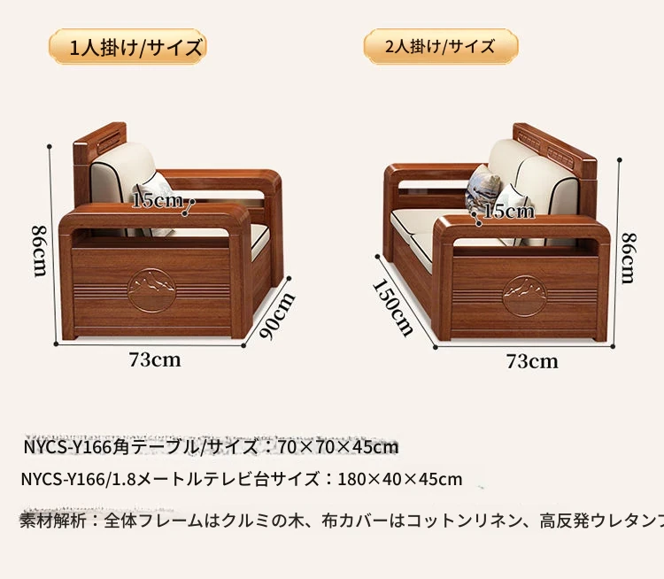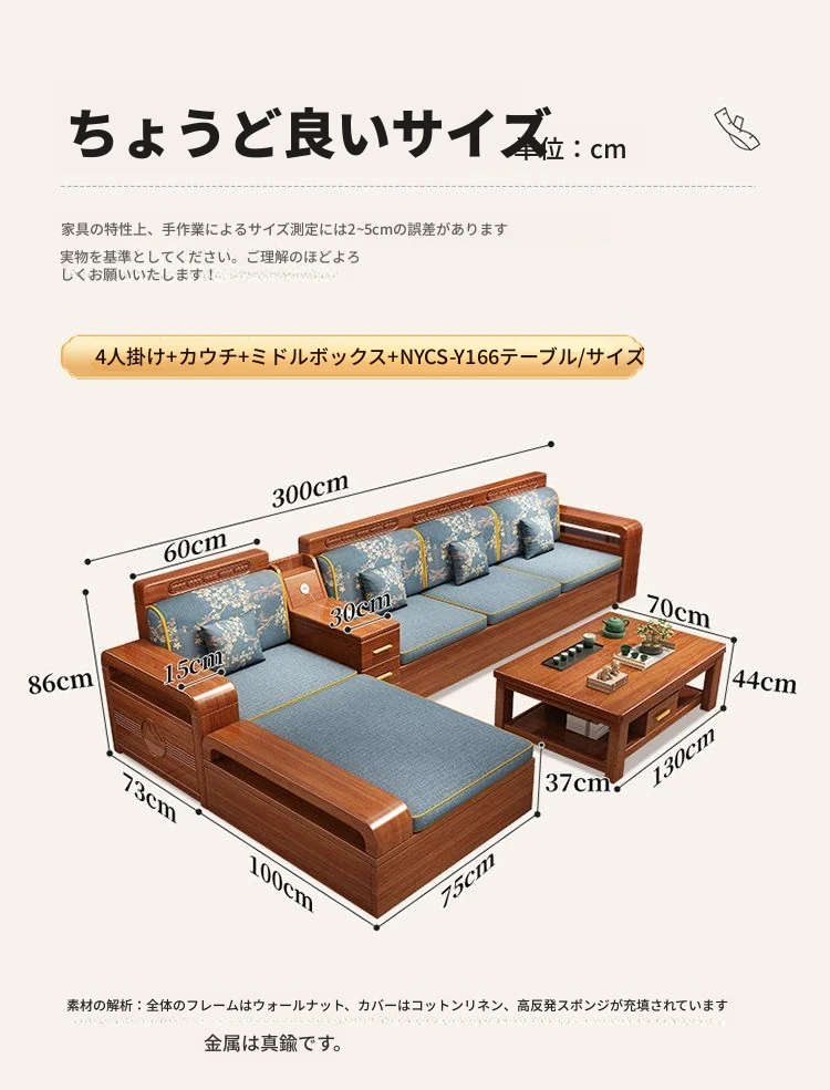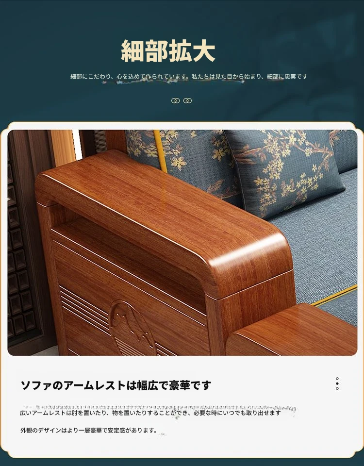ウォールナット無垢材ソファセット|現代的なリビングにぴったり!冬夏兼用の小型中式彫刻家具で、経済的にも優れた選択肢です。快適な空間を演出し、スタイリッシュにお部屋を彩ります!