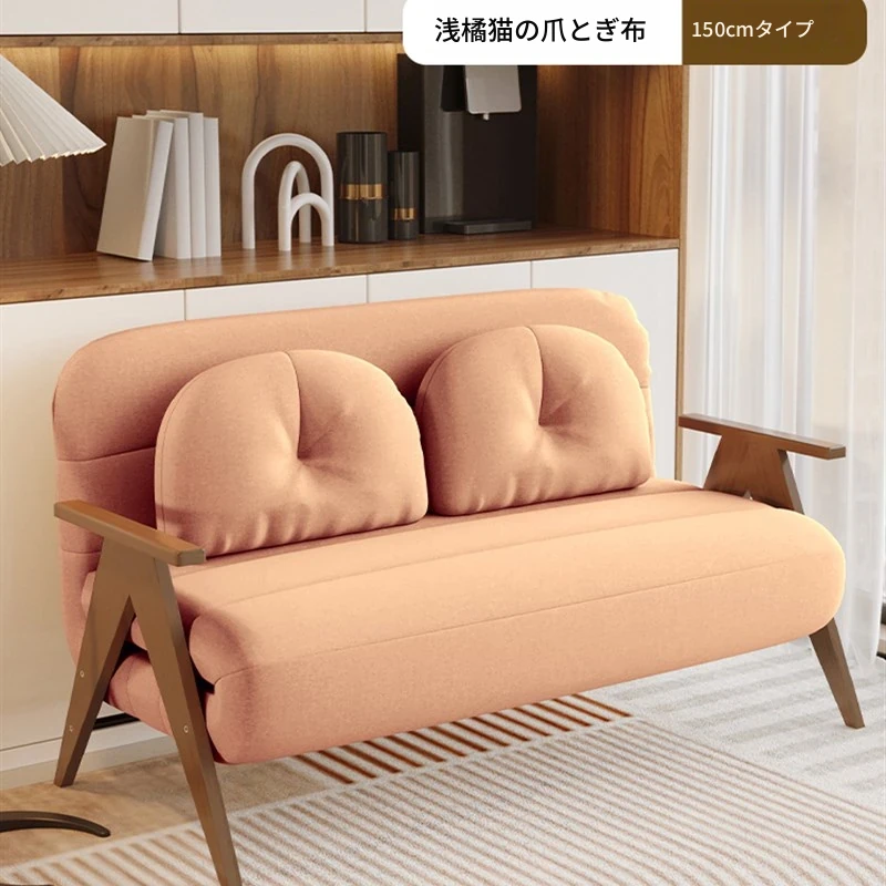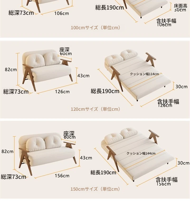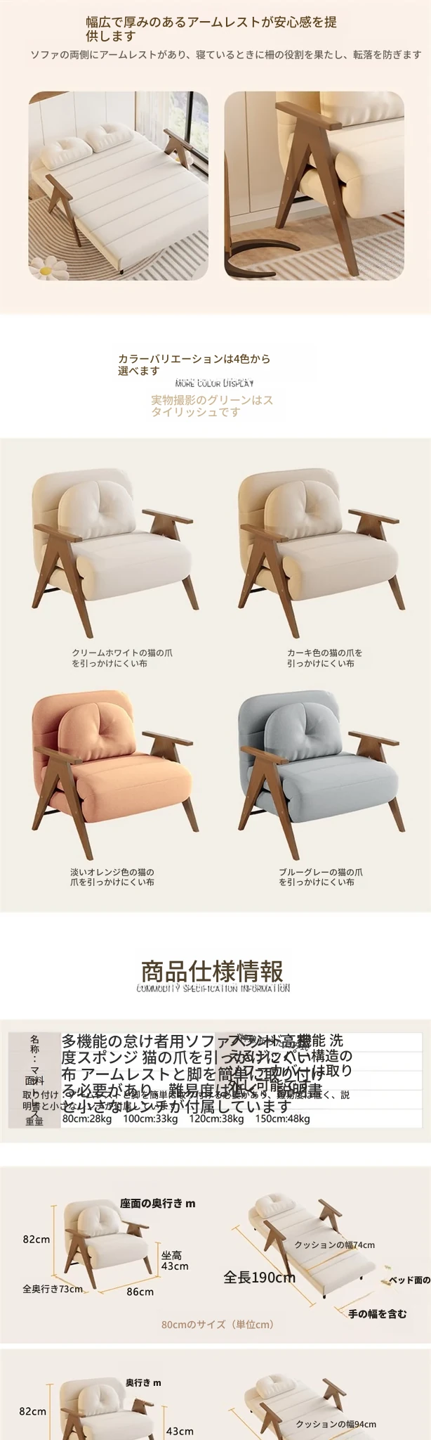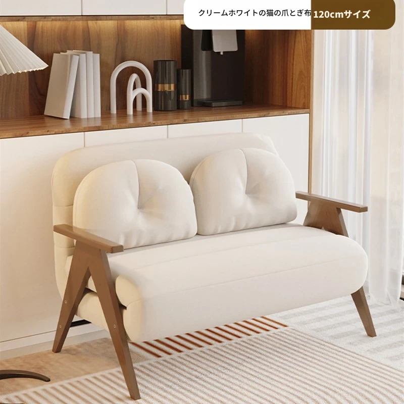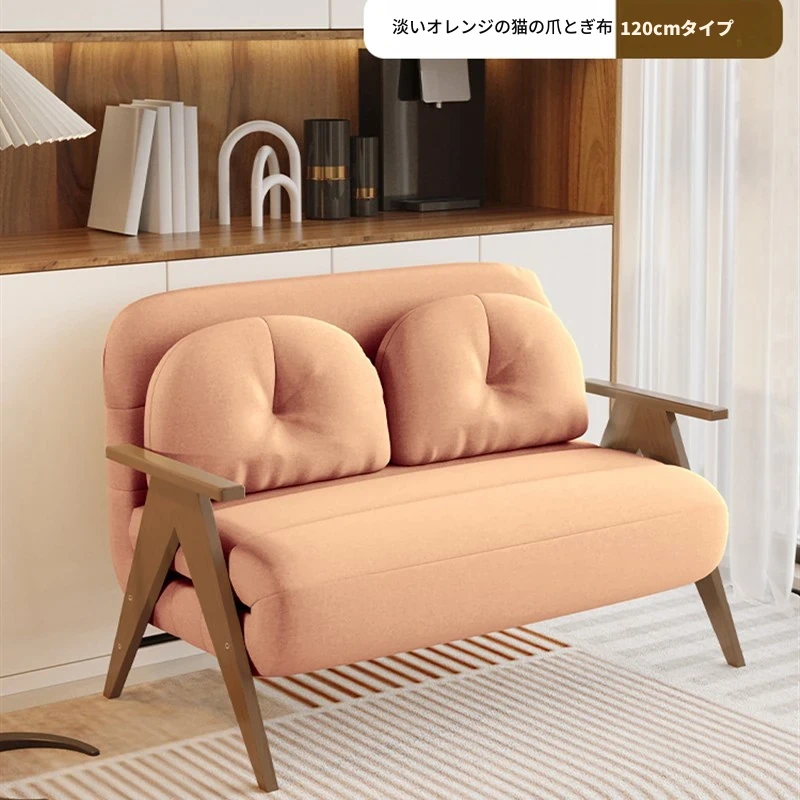 折りたたみソファベッド|多機能でスペースを節約!クリーミーなデザインの一人用ベッド|家庭用やバルコニーにぴったりの木製ソファベッド。快適な眠りとおしゃれな空間を実現!