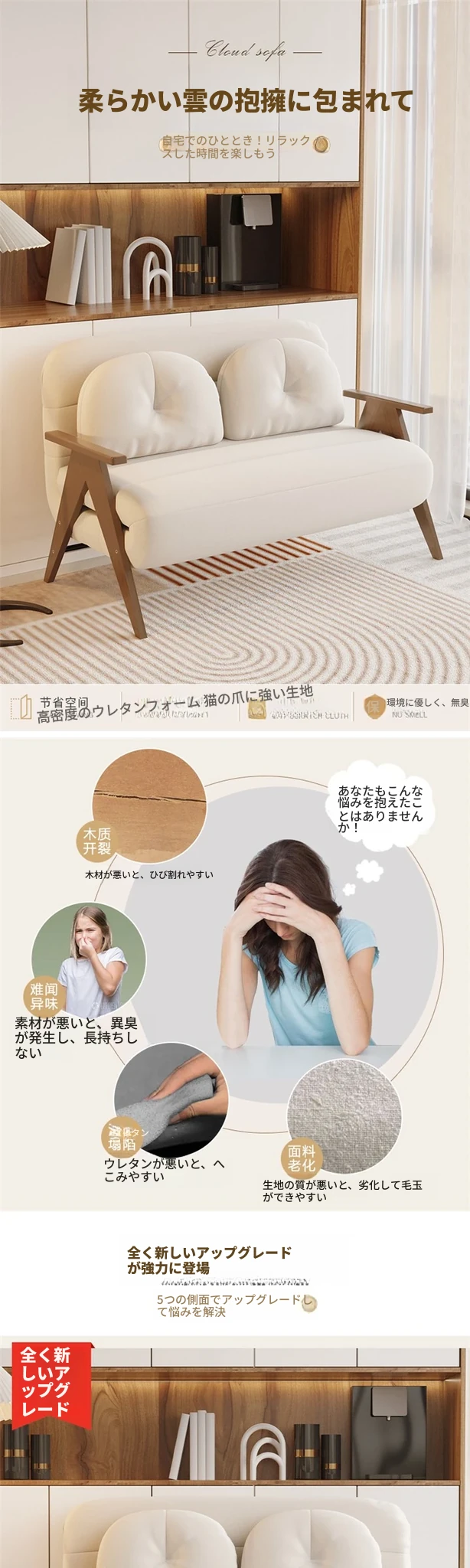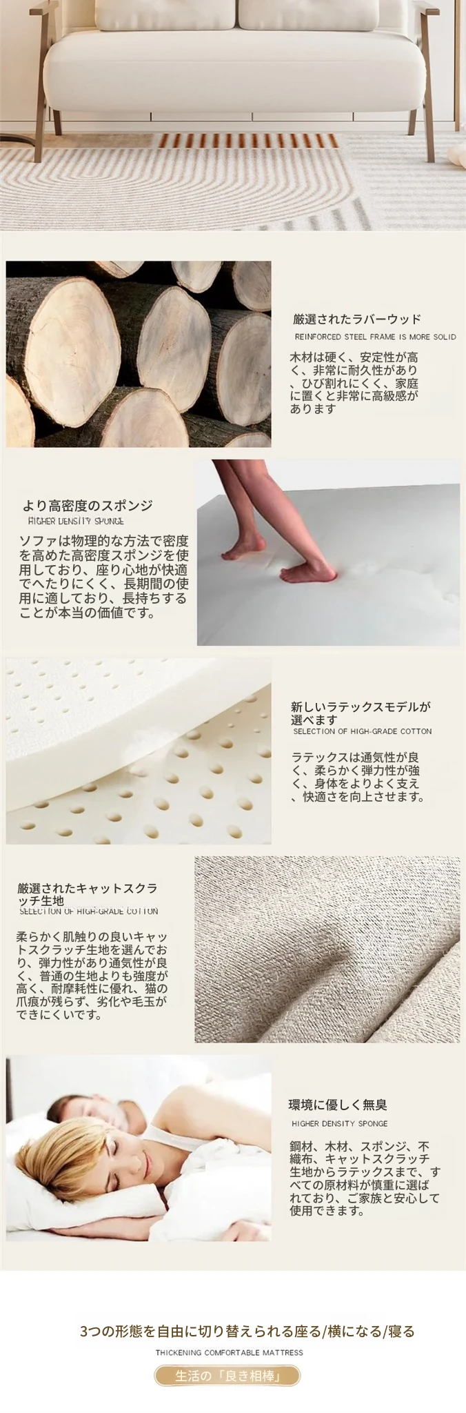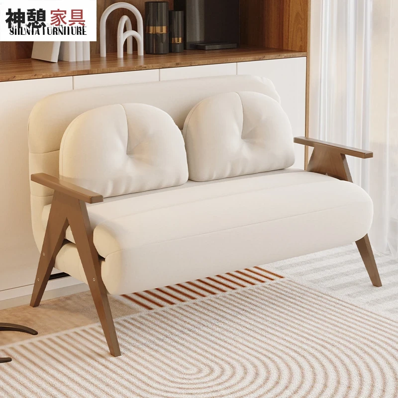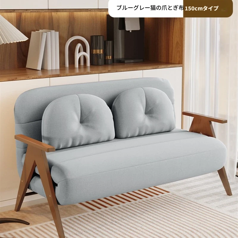 折りたたみソファベッド|多機能でスペースを節約!クリーミーなデザインの一人用ベッド|家庭用やバルコニーにぴったりの木製ソファベッド。快適な眠りとおしゃれな空間を実現!