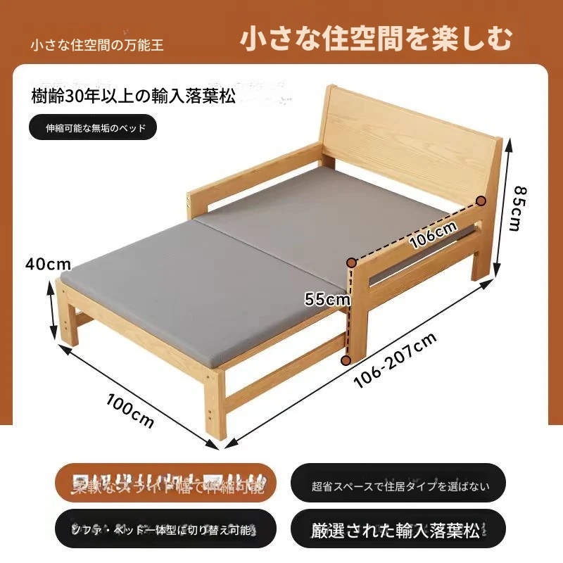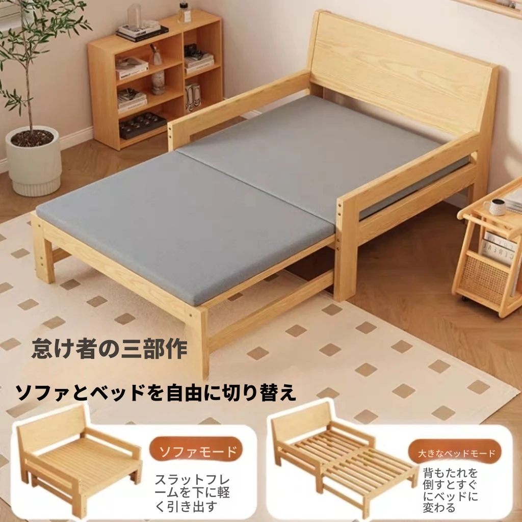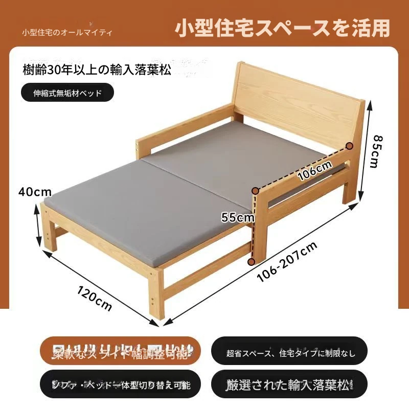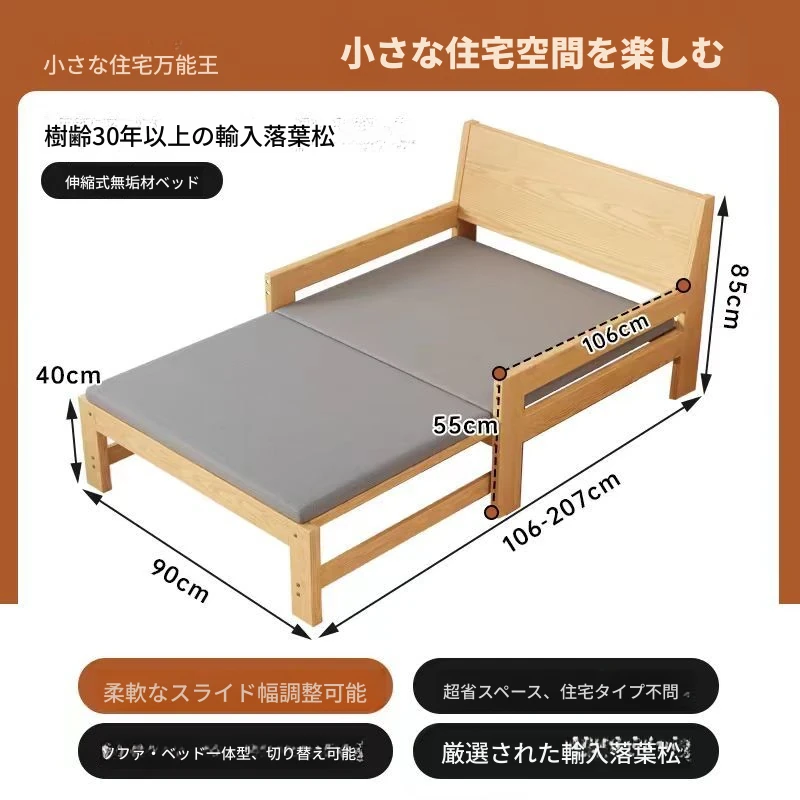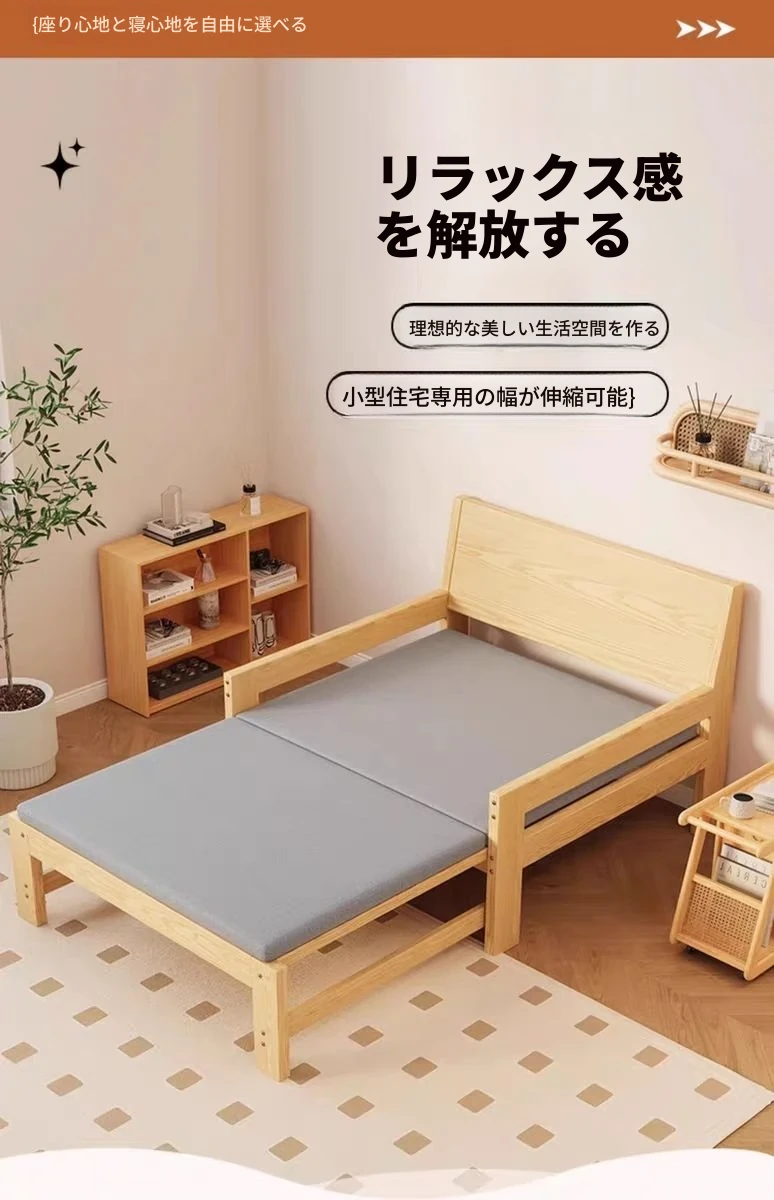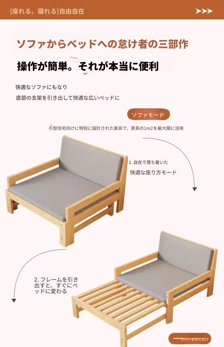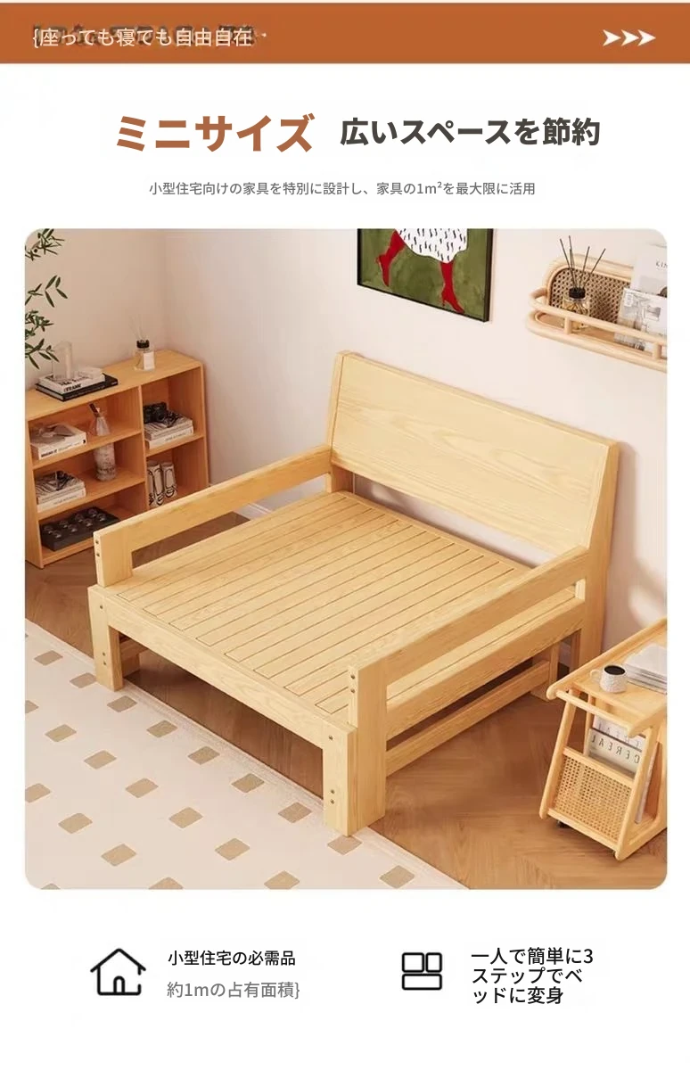 高品質の天然木製ソファベッド - 小スペースに最適な2in1伸縮式デザイン!引き出し式で使い勝手抜群の大人向け折りたたみベッド!快適な睡眠とスタイリッシュな空間を両立させる一品です。