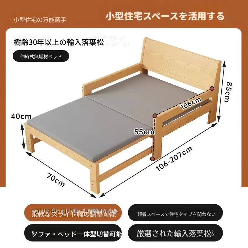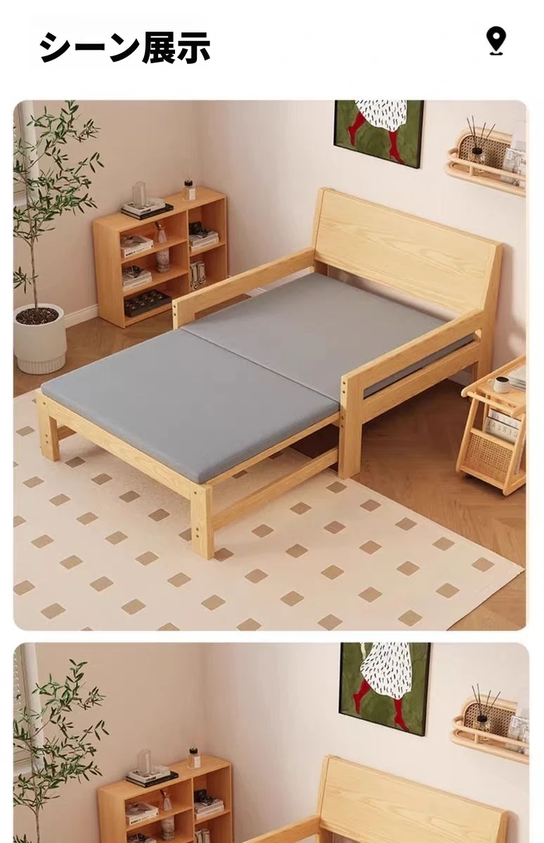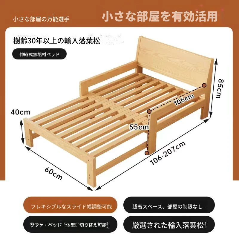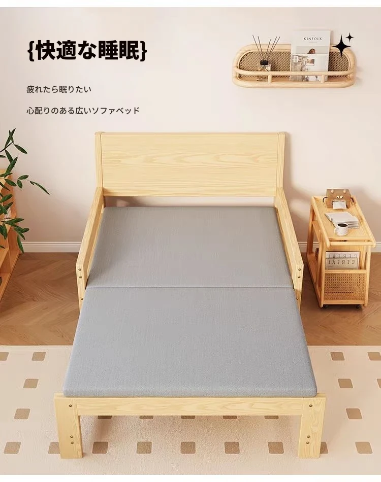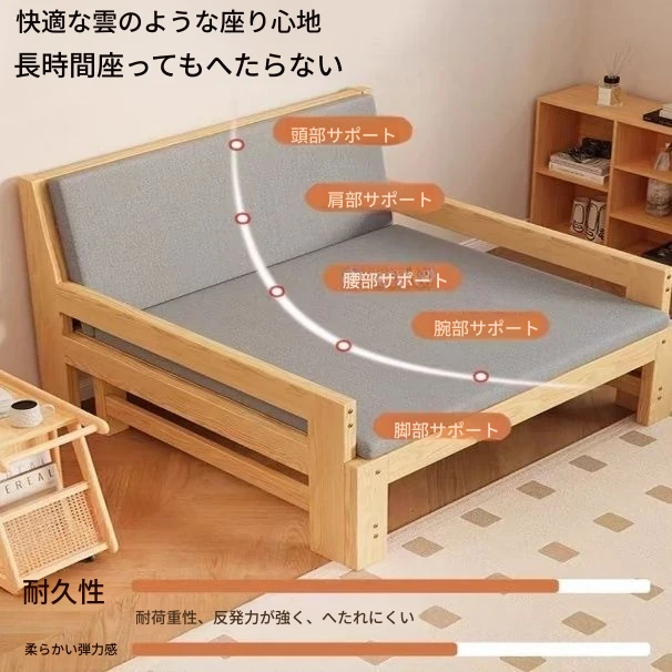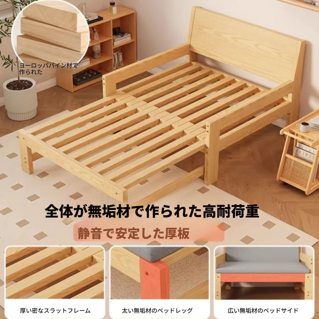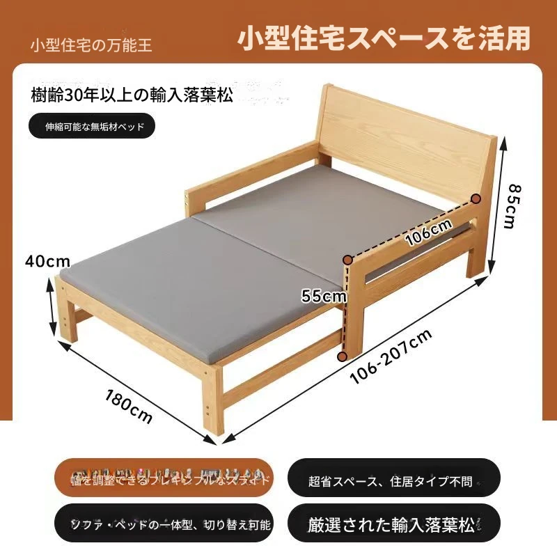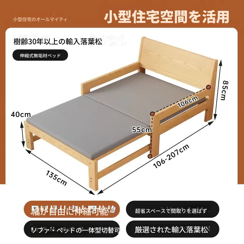 高品質の天然木製ソファベッド - 小スペースに最適な2in1伸縮式デザイン!引き出し式で使い勝手抜群の大人向け折りたたみベッド!快適な睡眠とスタイリッシュな空間を両立させる一品です。