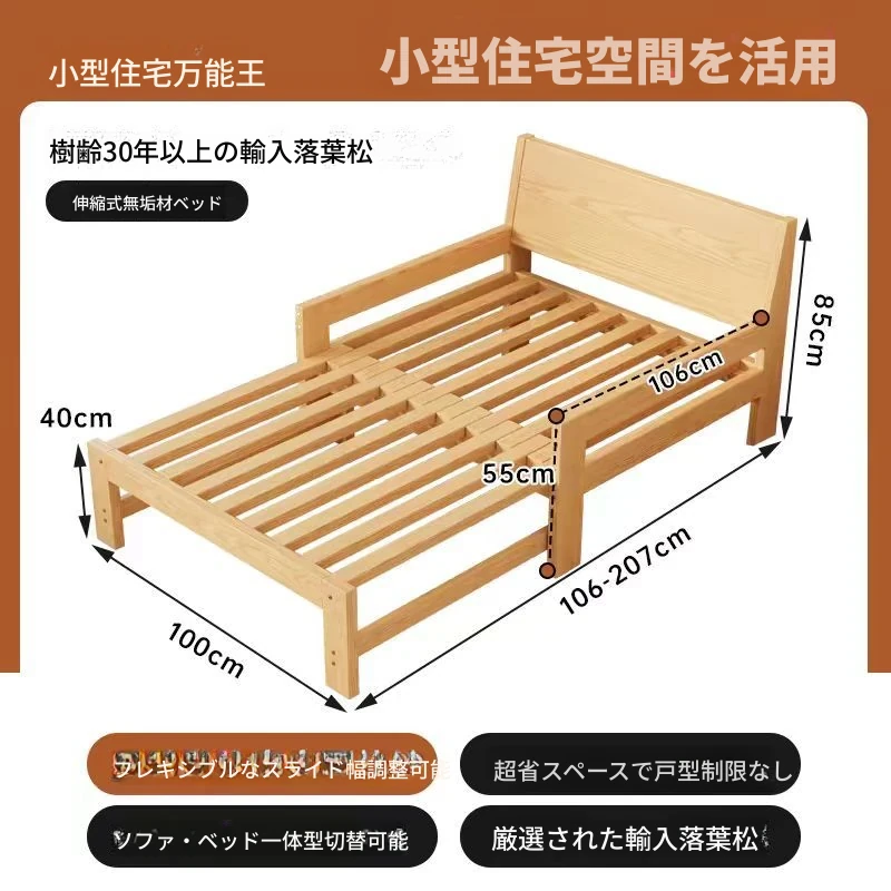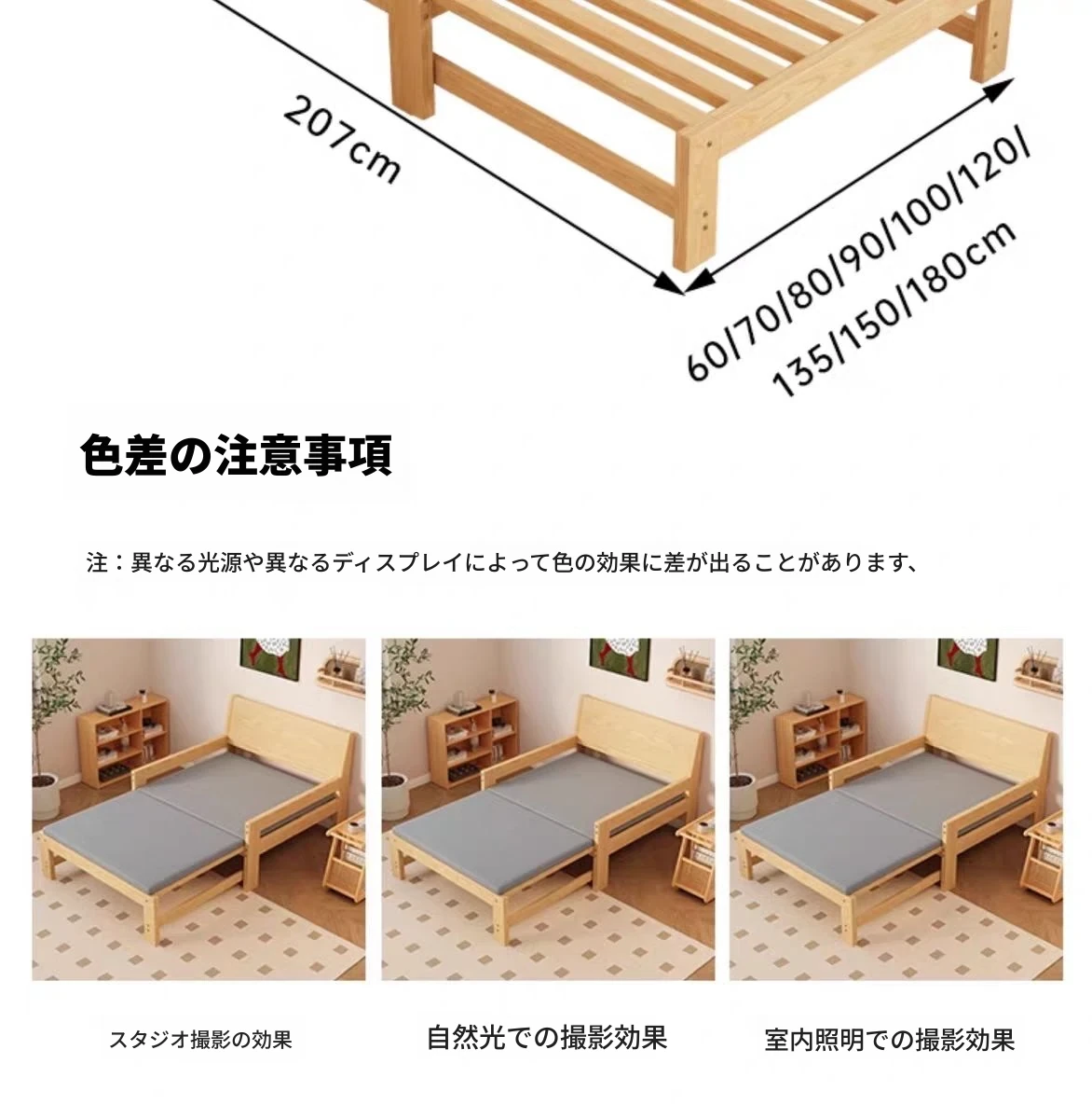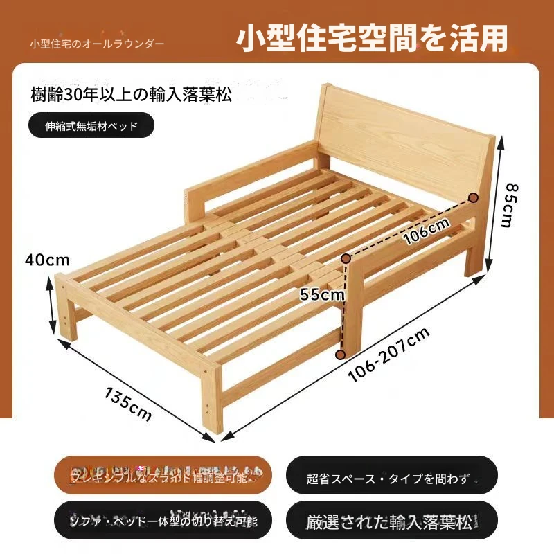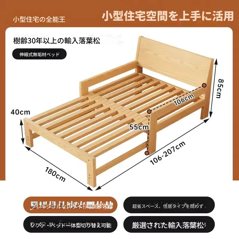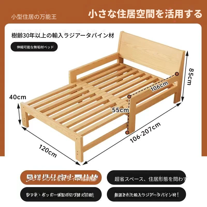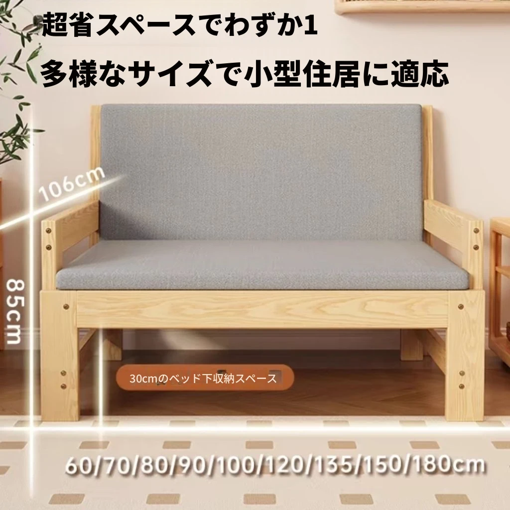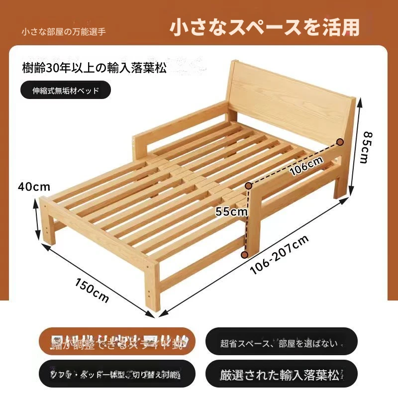 高品質の天然木製ソファベッド - 小スペースに最適な2in1伸縮式デザイン!引き出し式で使い勝手抜群の大人向け折りたたみベッド!快適な睡眠とスタイリッシュな空間を両立させる一品です。