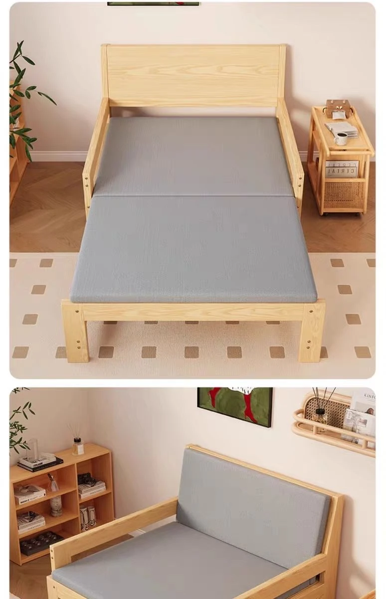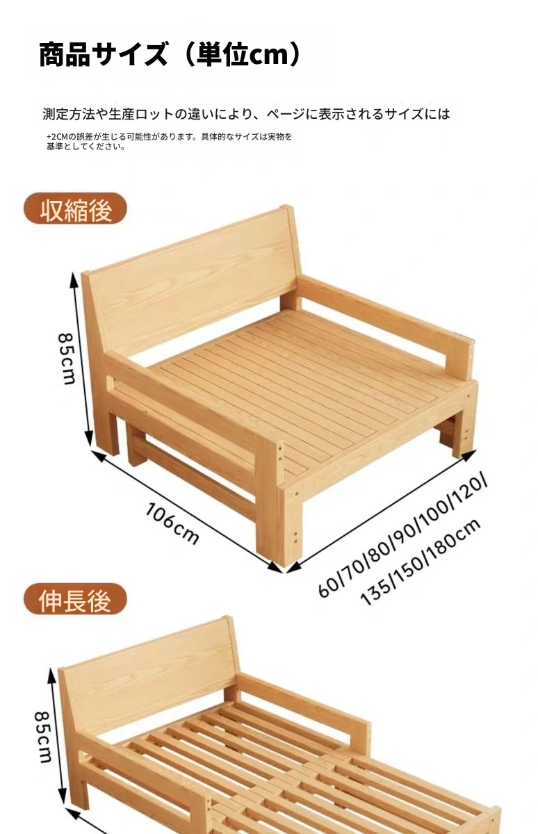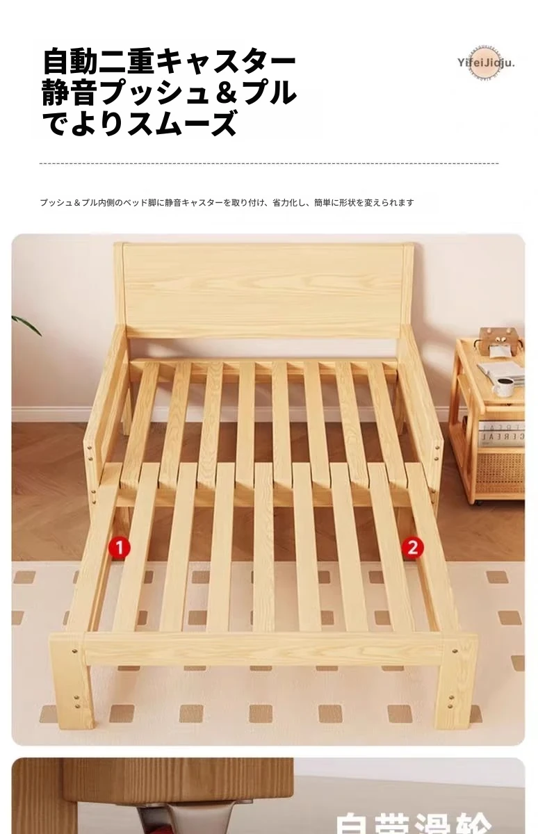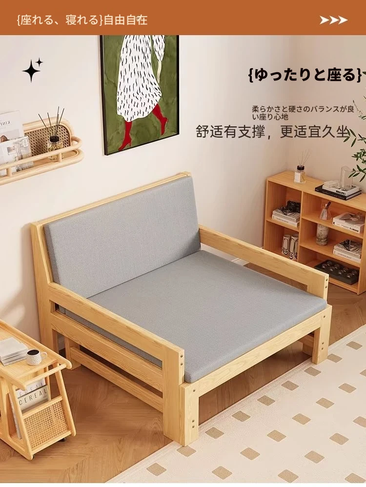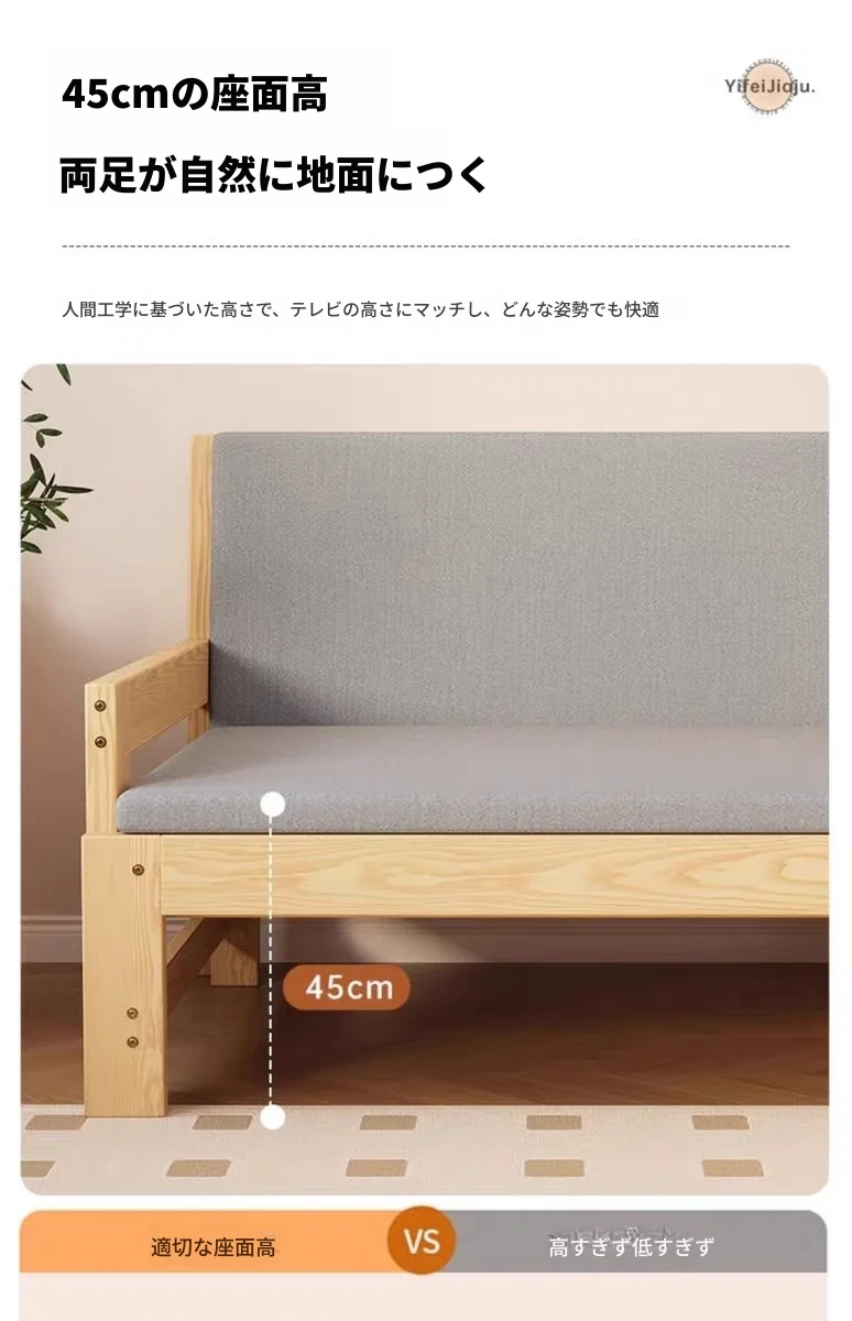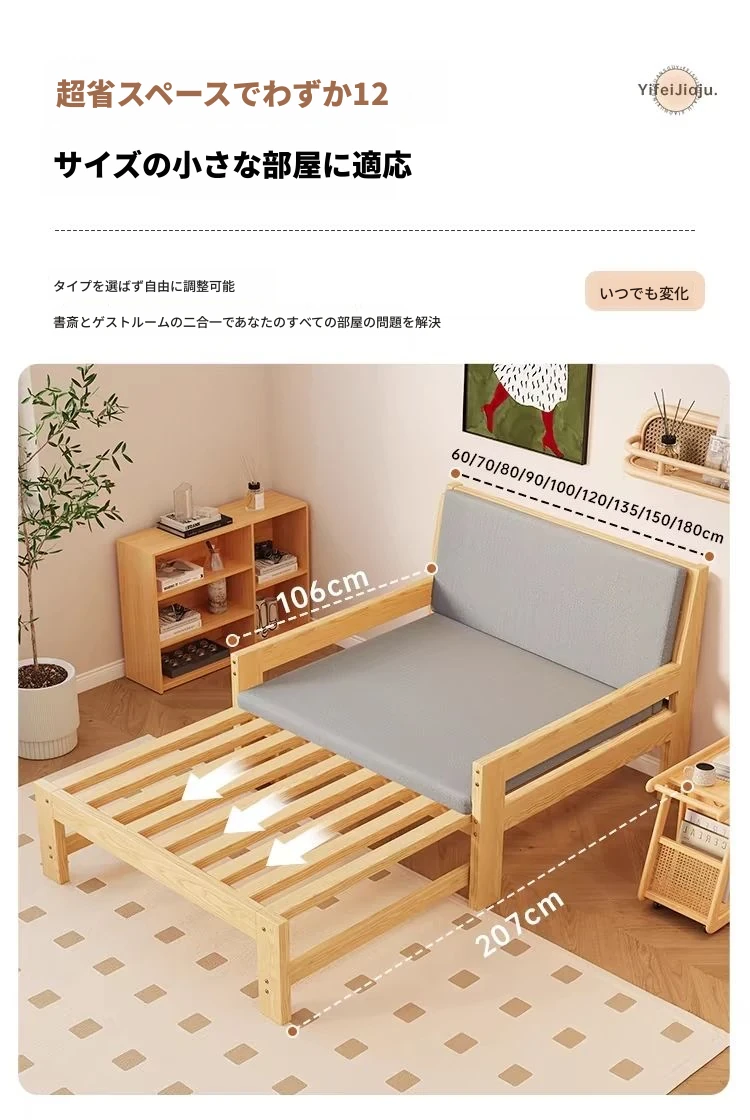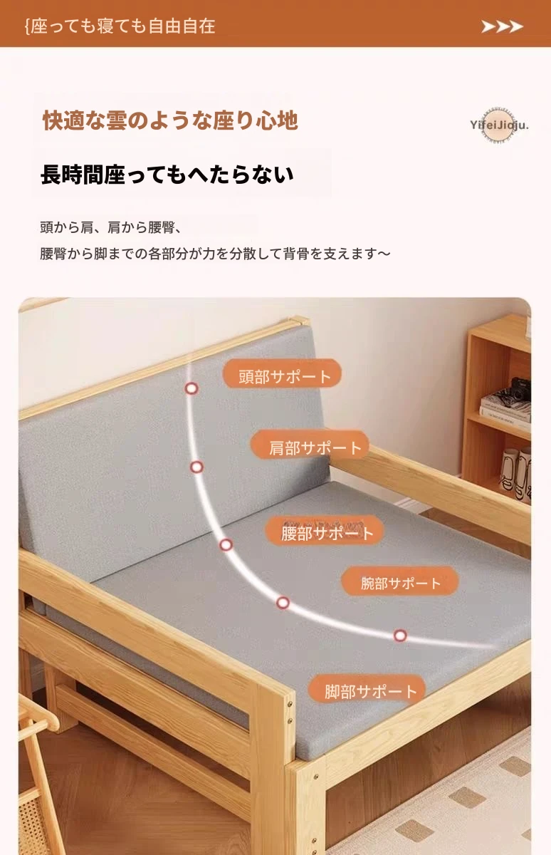 高品質の天然木製ソファベッド - 小スペースに最適な2in1伸縮式デザイン!引き出し式で使い勝手抜群の大人向け折りたたみベッド!快適な睡眠とスタイリッシュな空間を両立させる一品です。