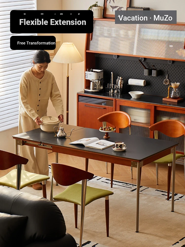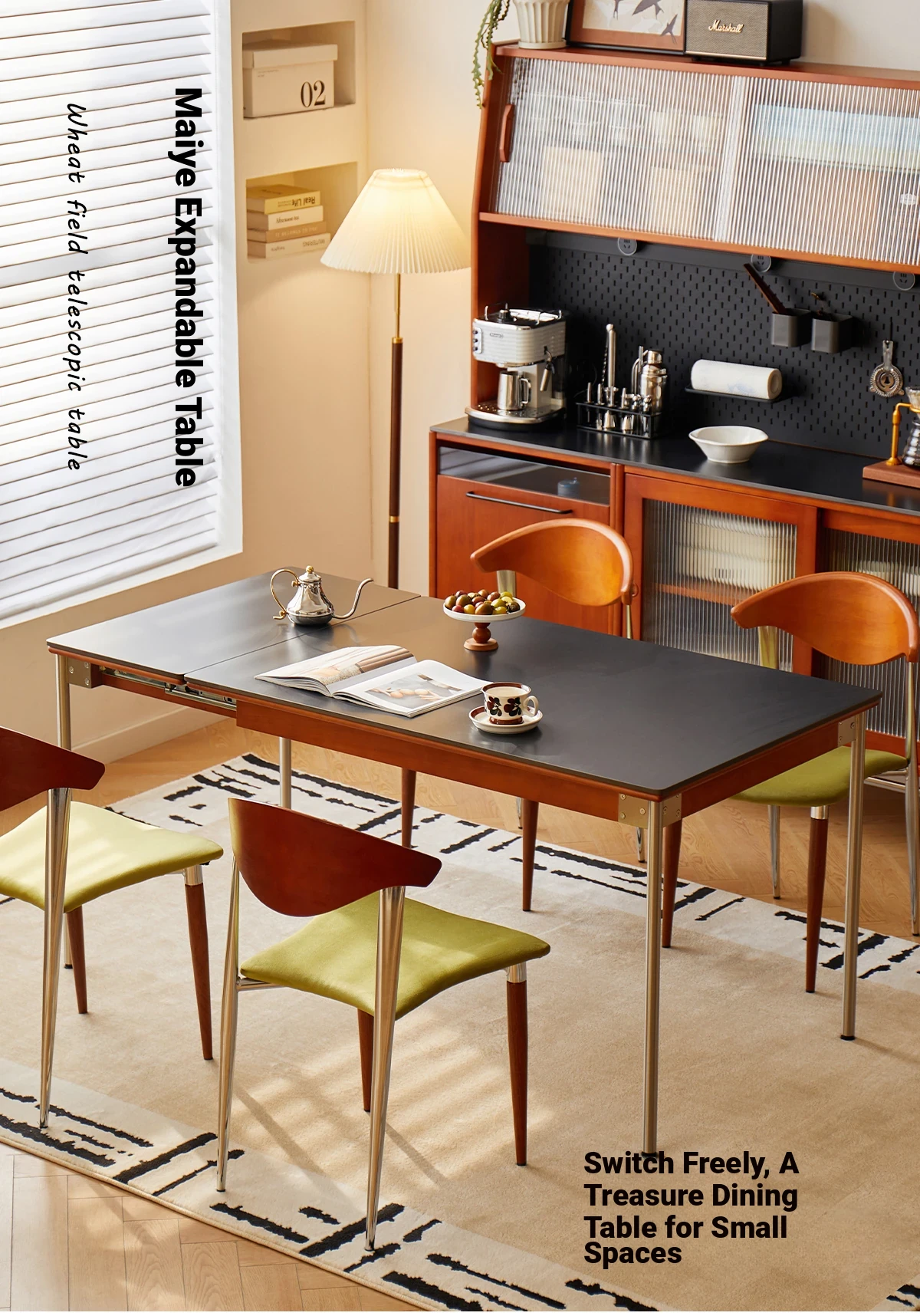 MuZo Expandable Solid Wood Dining Table - Vintage Style Rectangular Folding Table for Small Spaces, Perfect for Home Dining and Gatherings