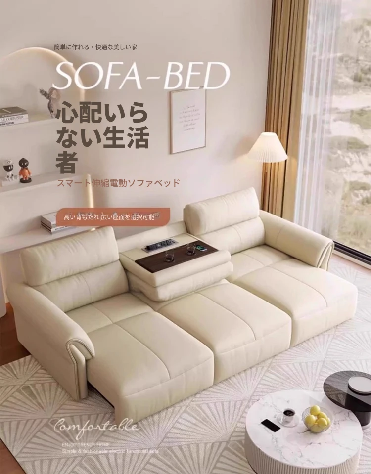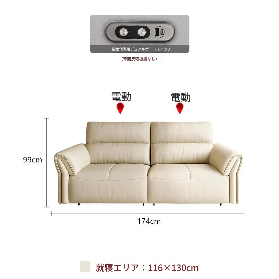 新作本革製高級電動ソファ!リビング兼用のソファベッドで、コンパクトな空間にもぴったりの多機能デザイン。快適な座り心地とスタイリッシュな外観で、あなたの生活空間を一新します!