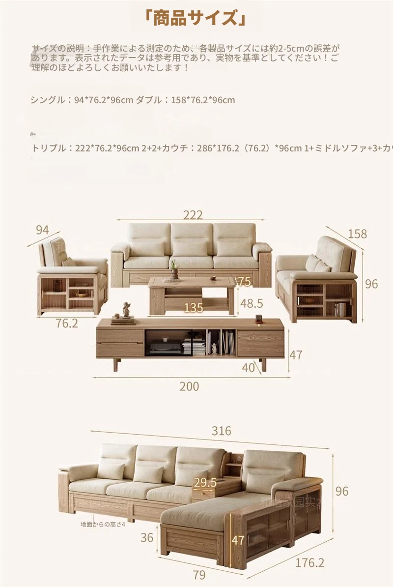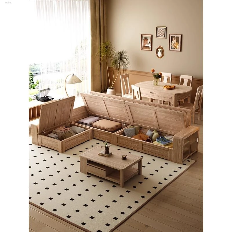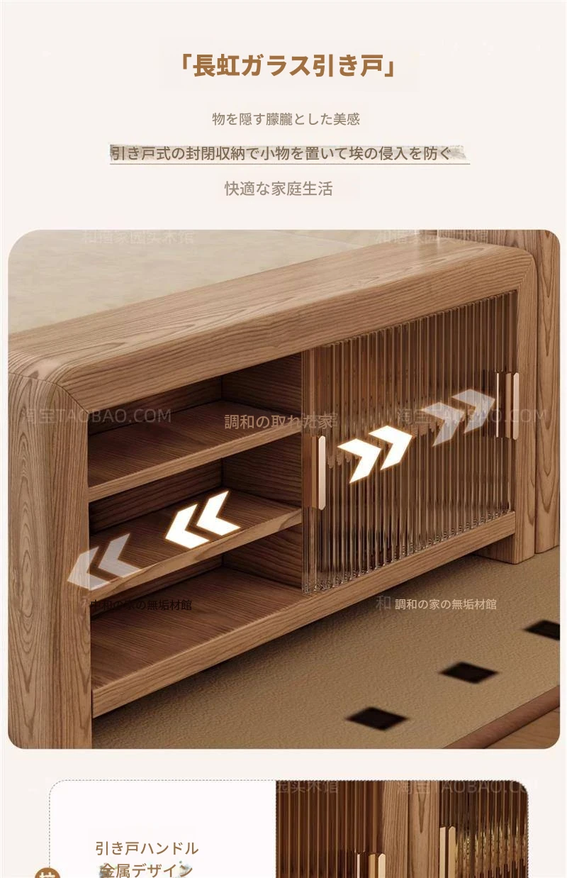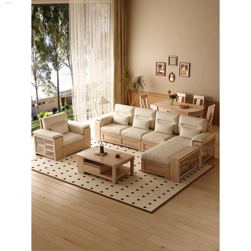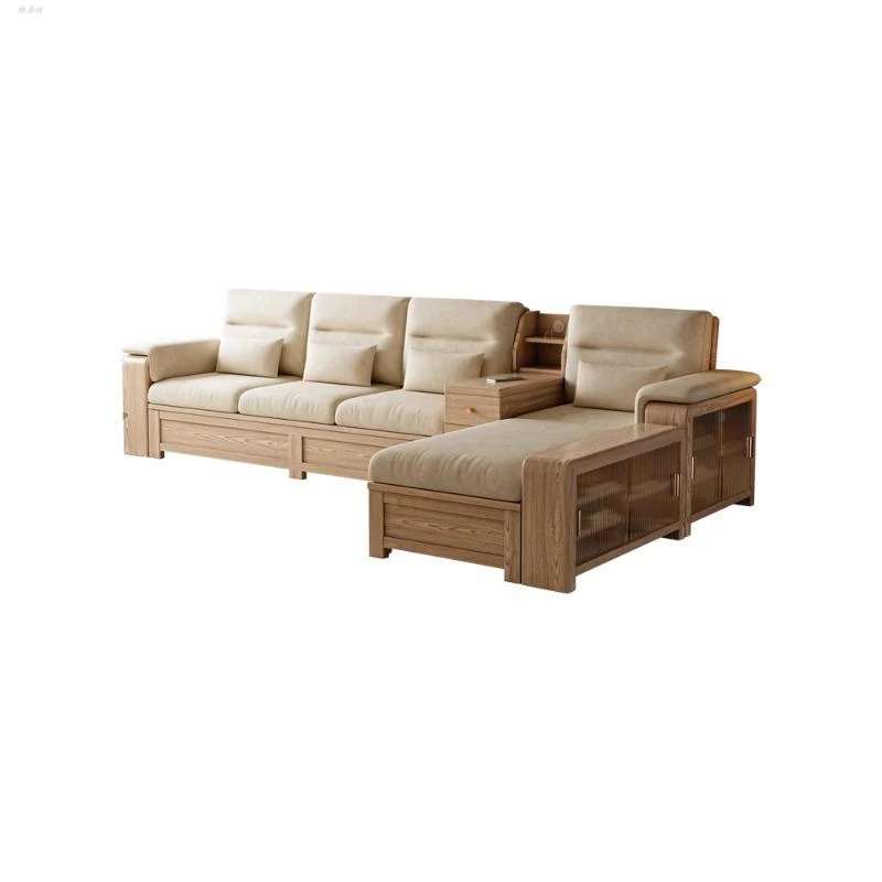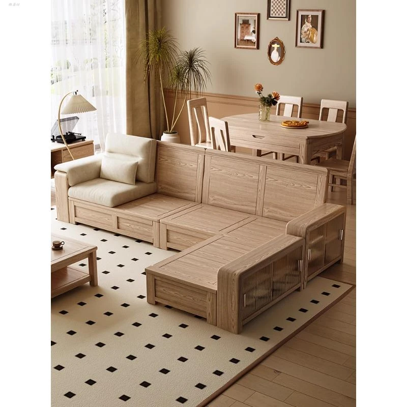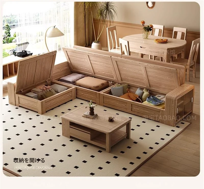 ホワイトアッシュ無垢材ソファ 小型リビング向け 北欧モダンシンプル デザイン収納付き ガラス&ファブリック仕様 天然木の温もりを感じる素敵なインテリアアイテム!