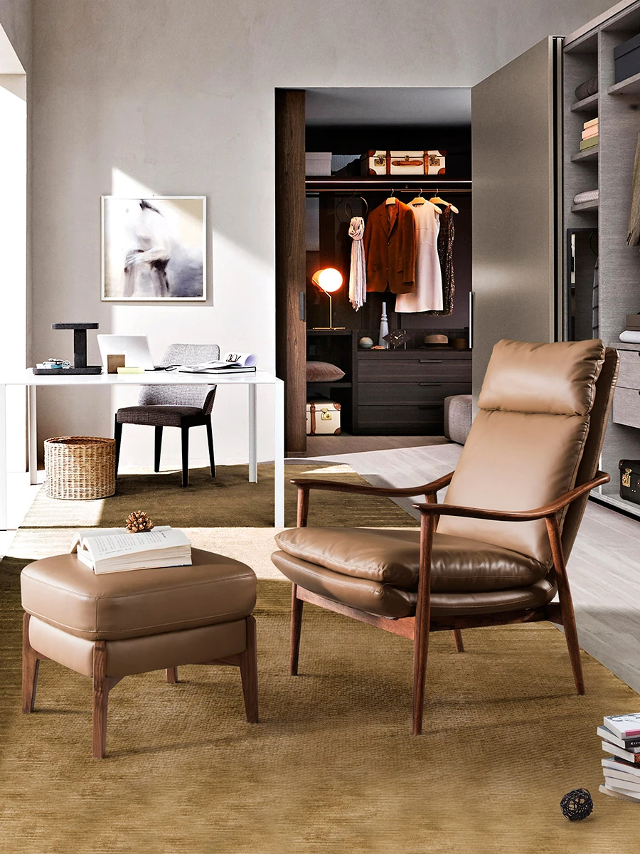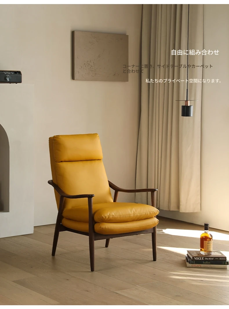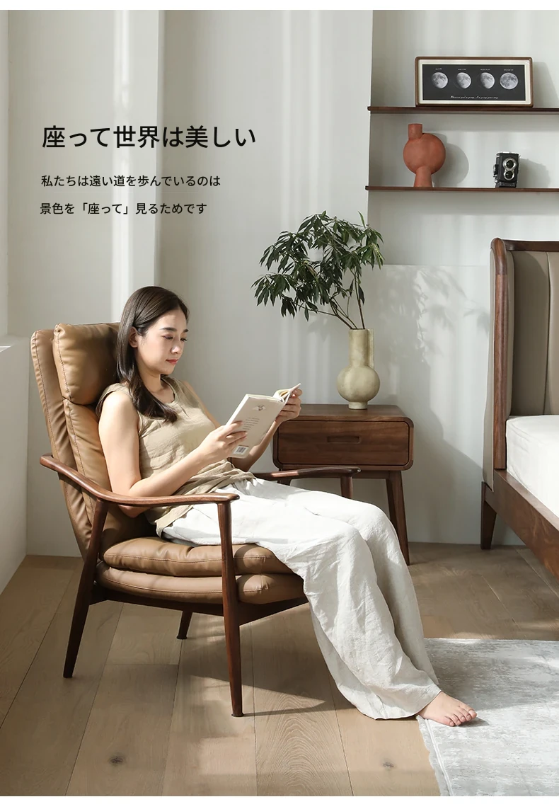 北米産ブラックウォールナットのバルコニー用リラックスチェア | 家庭用リビングに最適な本革ソファチェア | 人気の一人掛けソファ | 高級感溢れるデザインでおしゃれな空間を演出!