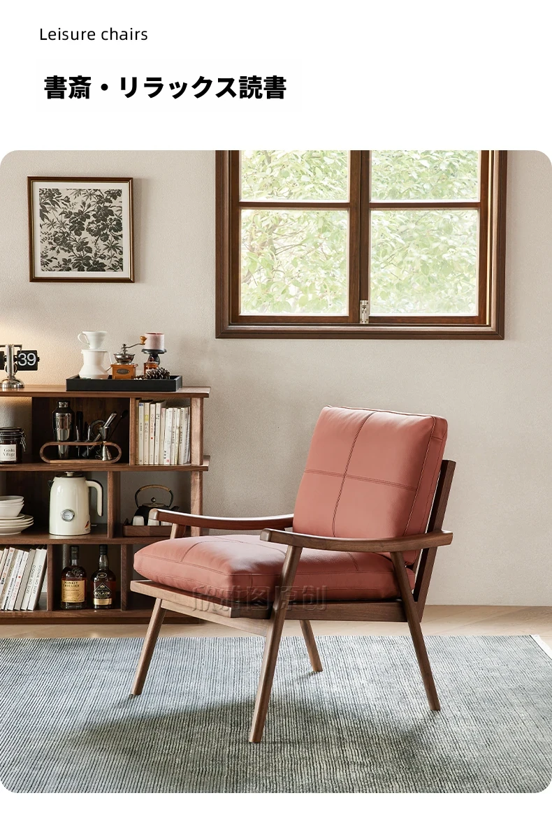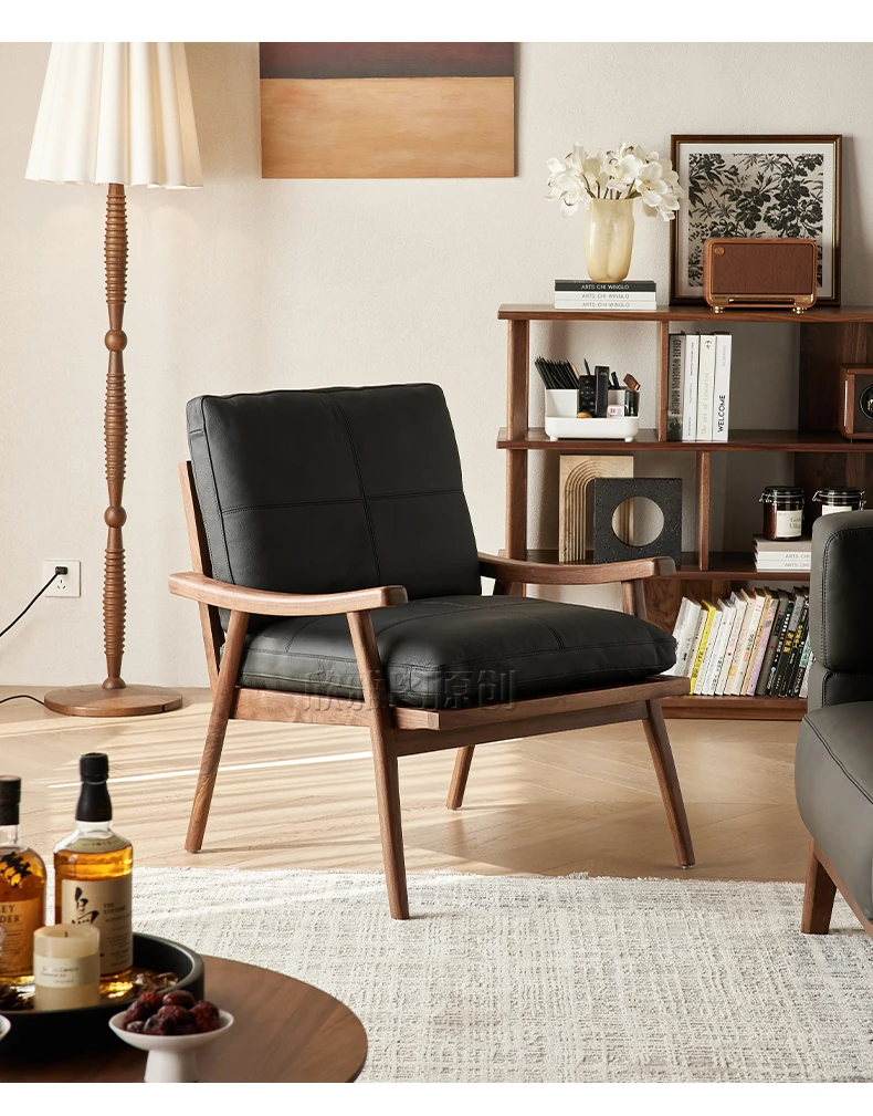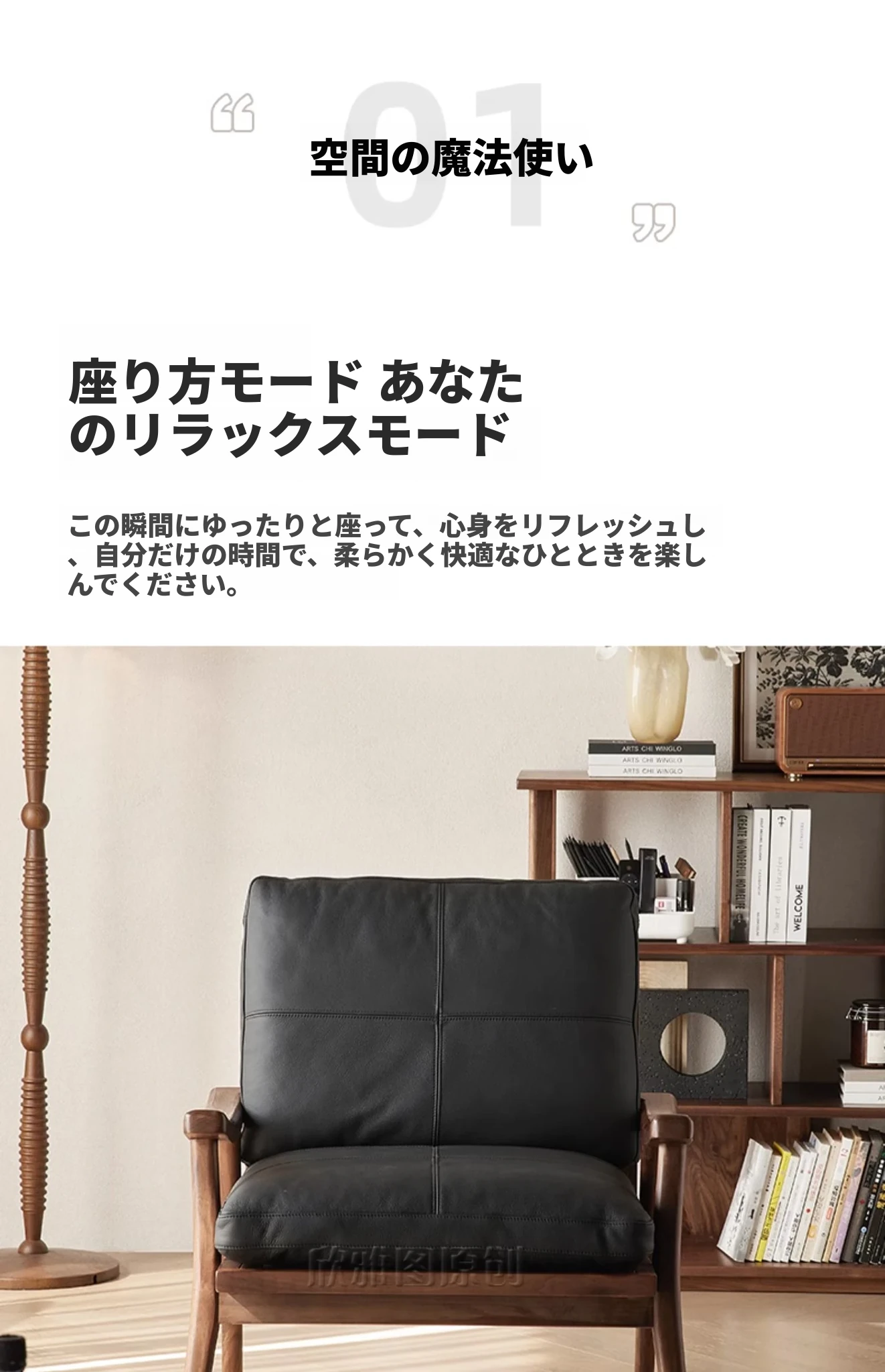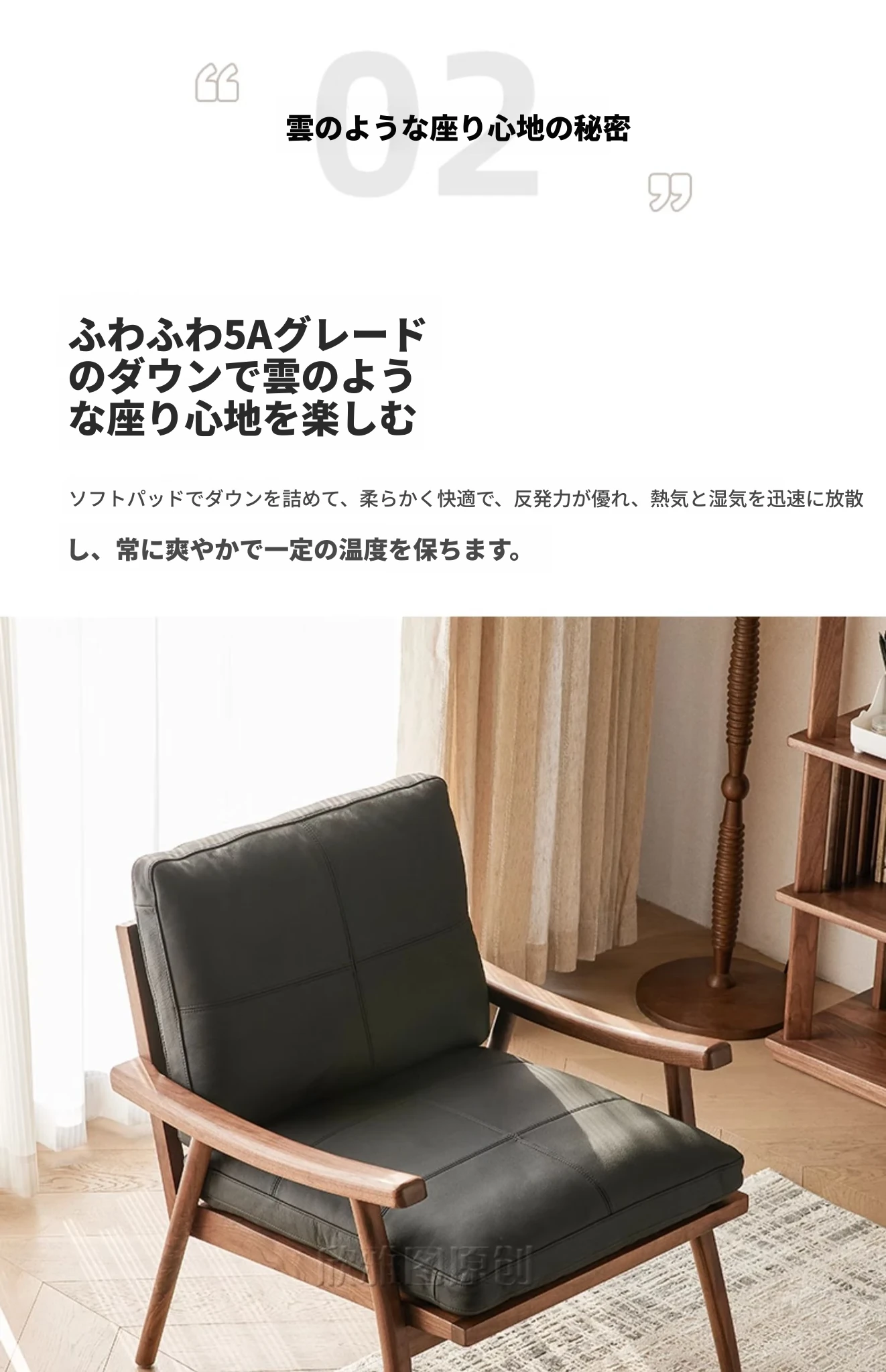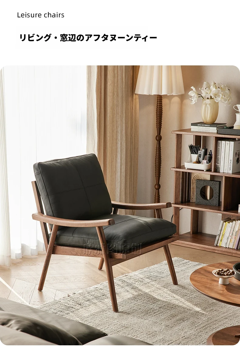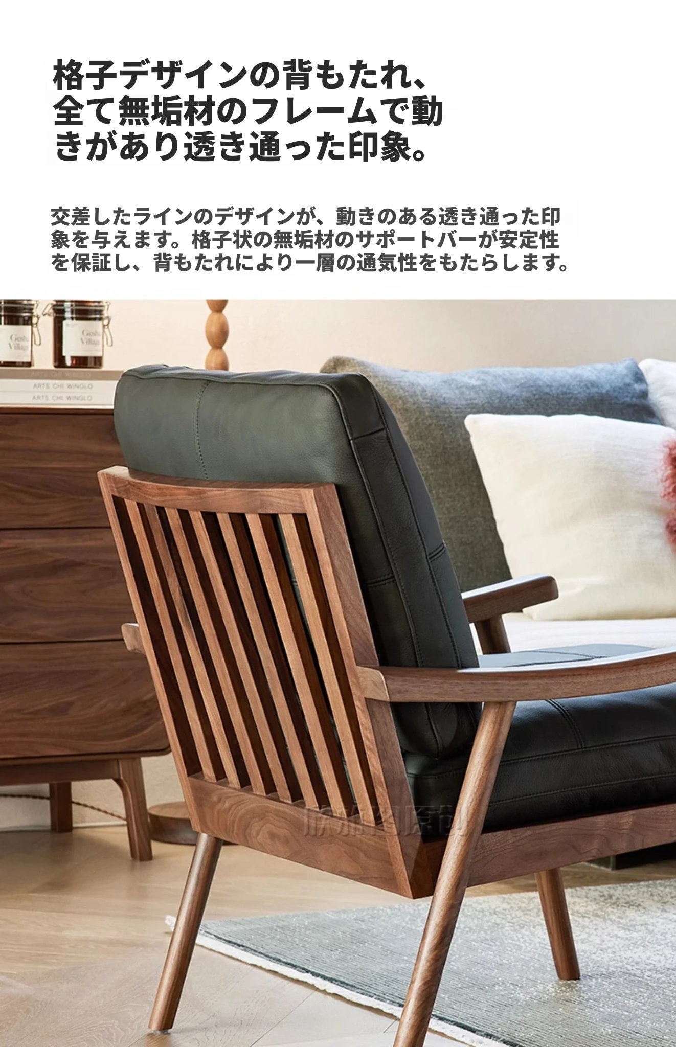 北米産ブラックウォールナットのソファチェア|高級本革使用|おしゃれなデザインのリビング用一人掛け椅子|快適なレジャータイムをお届けします!