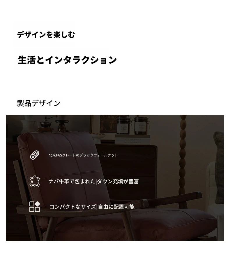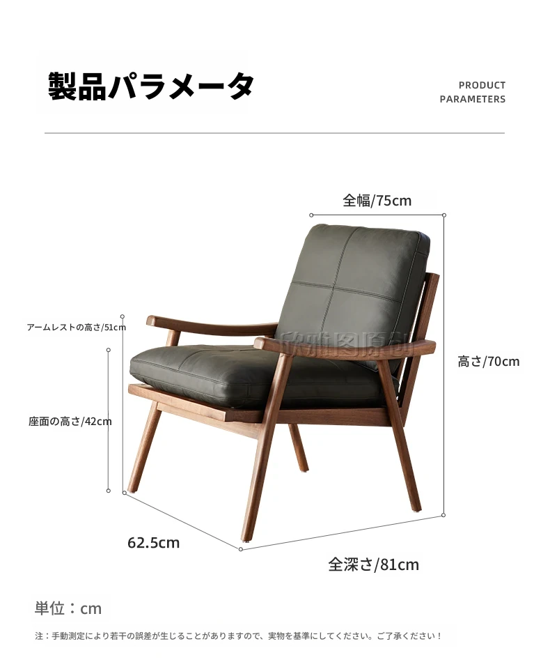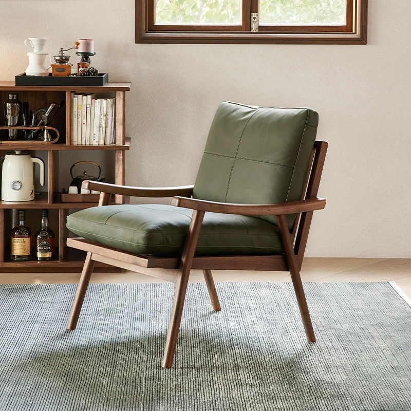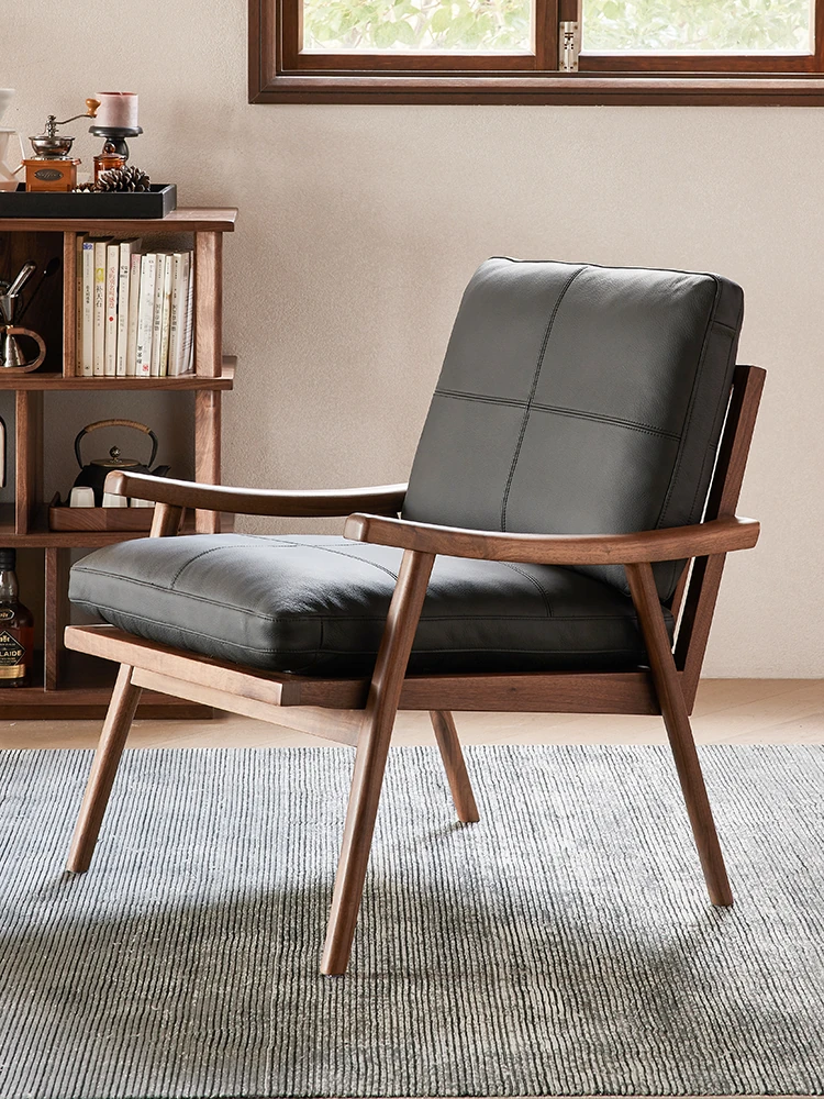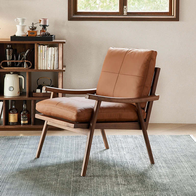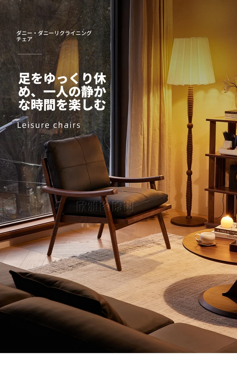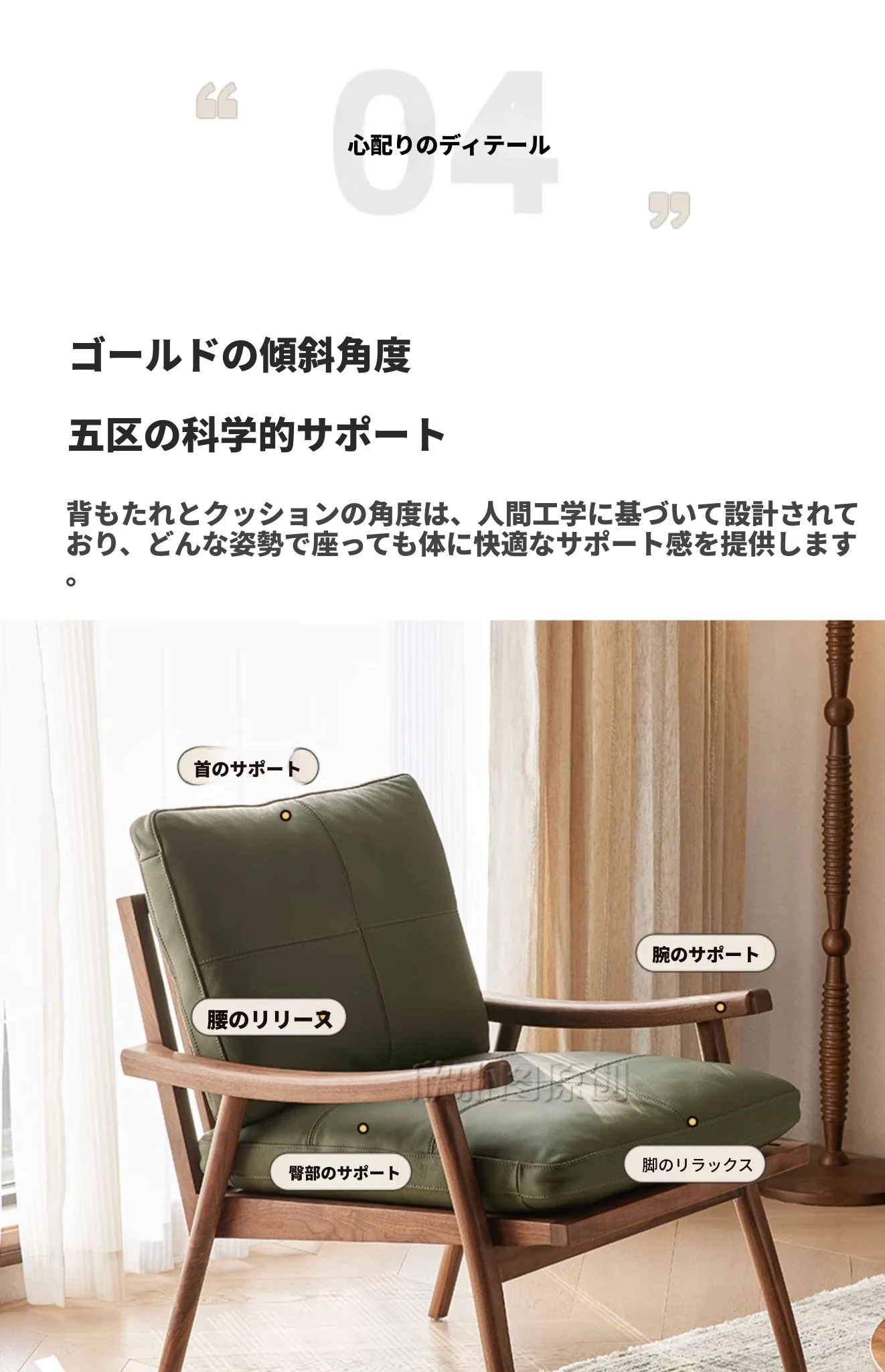 北米産ブラックウォールナットのソファチェア|高級本革使用|おしゃれなデザインのリビング用一人掛け椅子|快適なレジャータイムをお届けします!