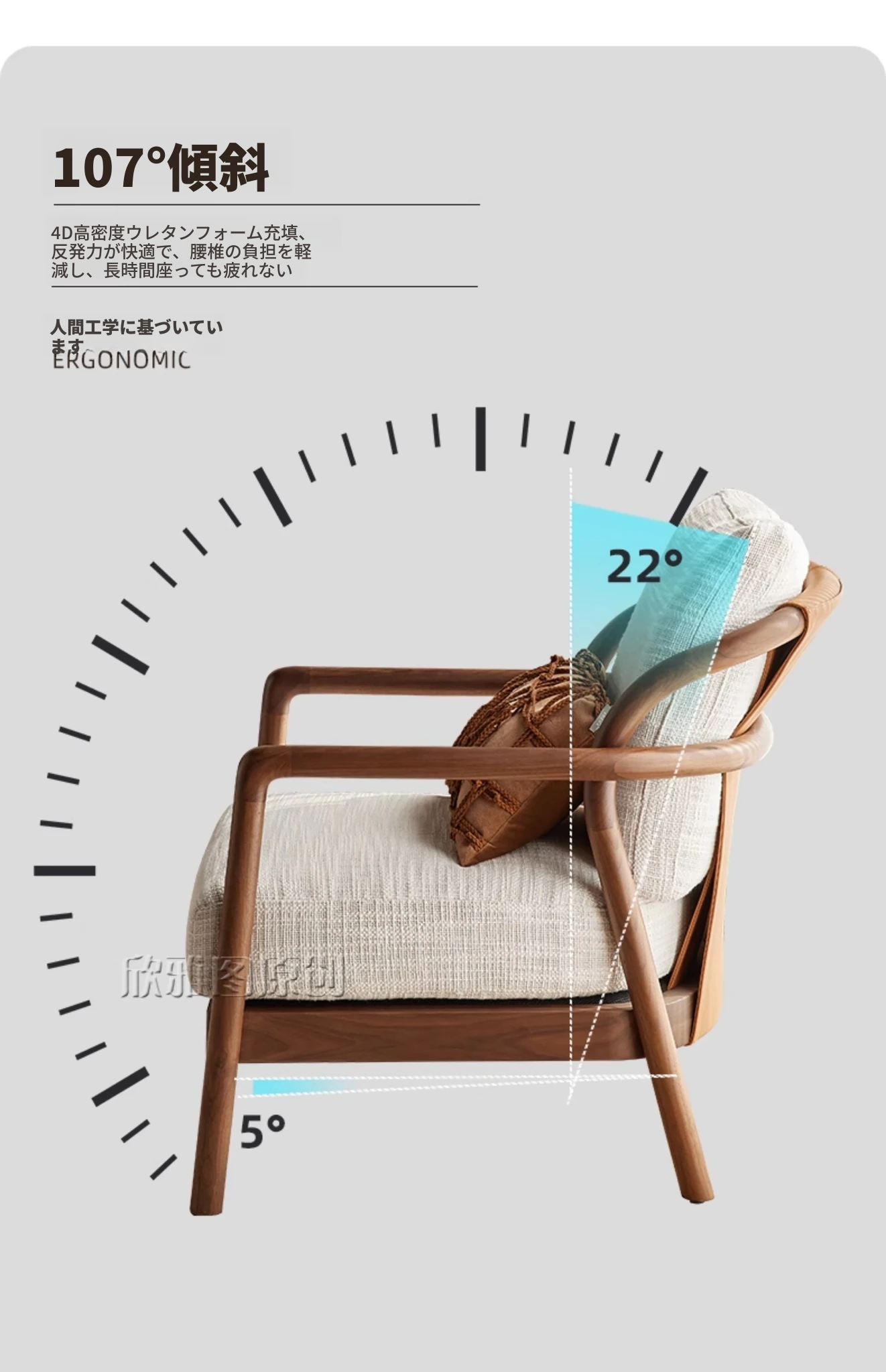 北米産ブラックウォールナットのデザイナーズリクライニングチェア - 高級感溢れるイタリアンスタイルの一人用ソファ、居心地の良いリビングルームに最適!