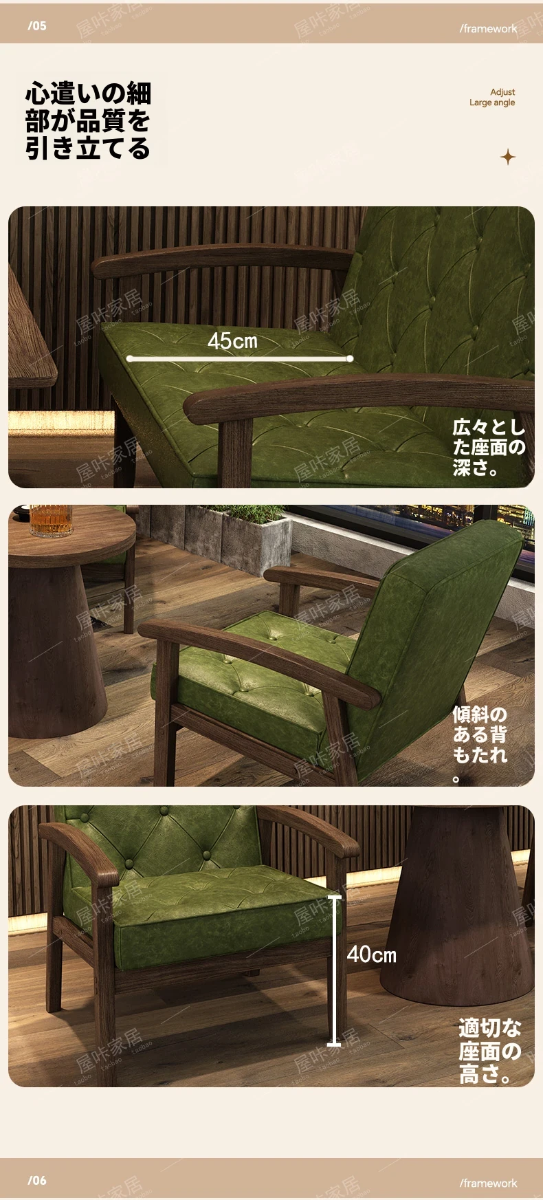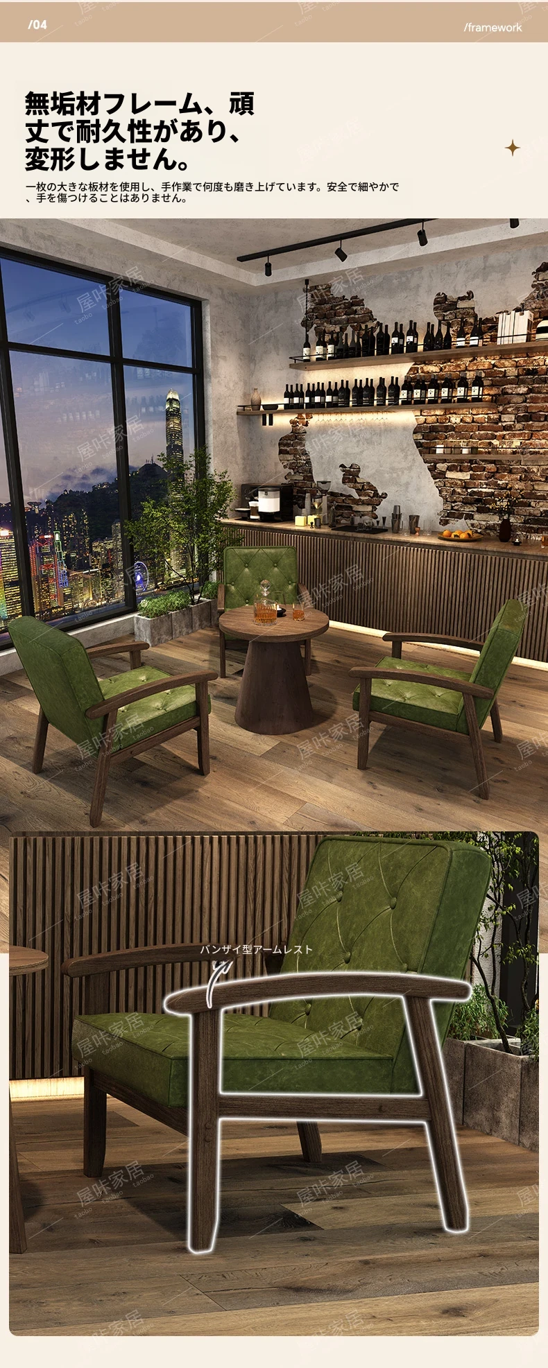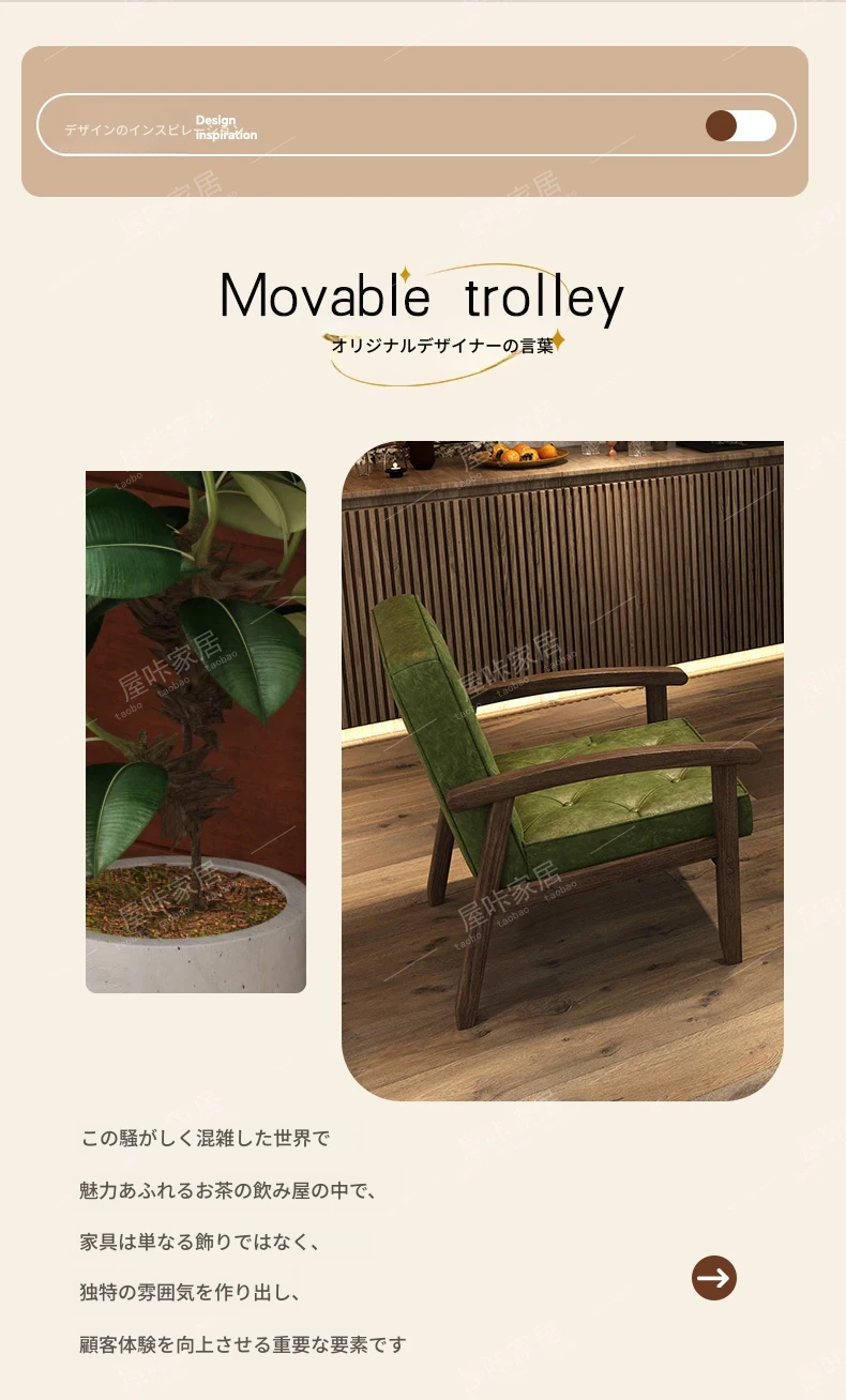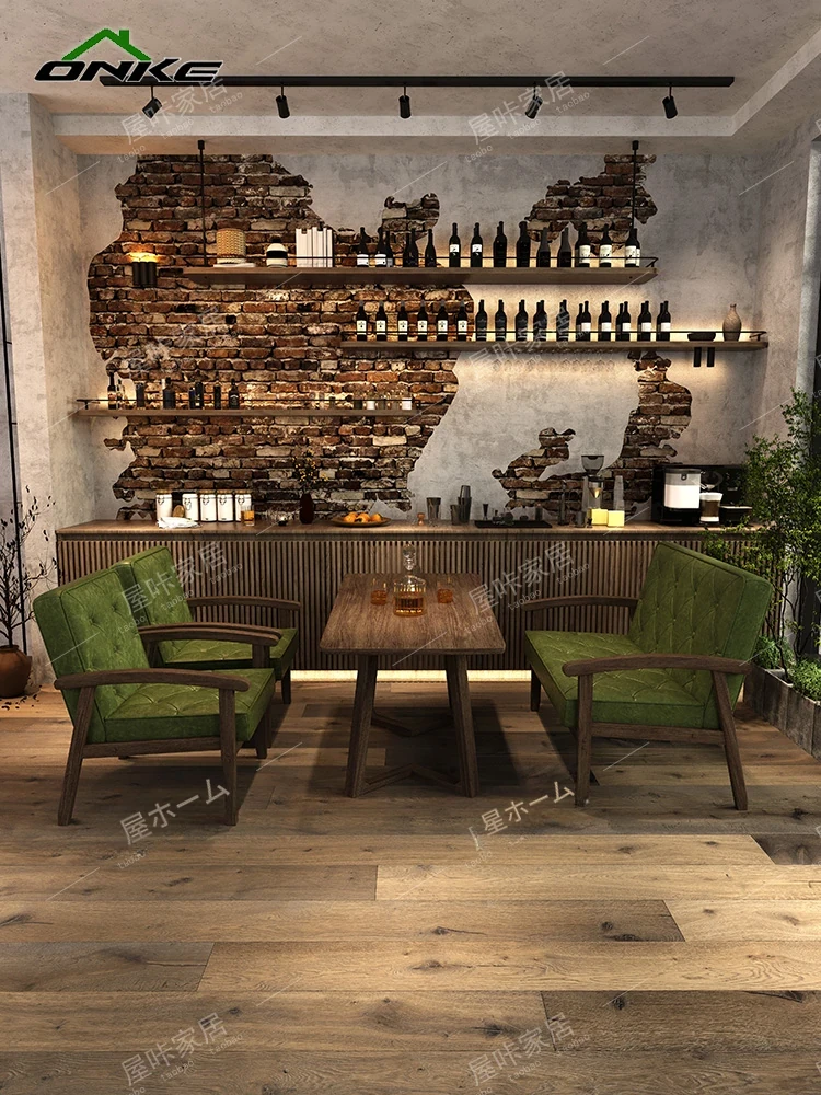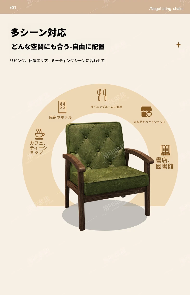 レトロなオイルワックスレザーを使用したリラックスエリア用のソファテーブルセット。バルコニーやホテル、民宿、カフェに最適なスタイリッシュな休憩スペースを演出します。