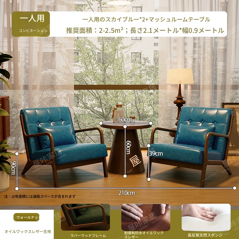 【防水オイルワックスレザー】湖の青色*2+マッシュルームテーブル