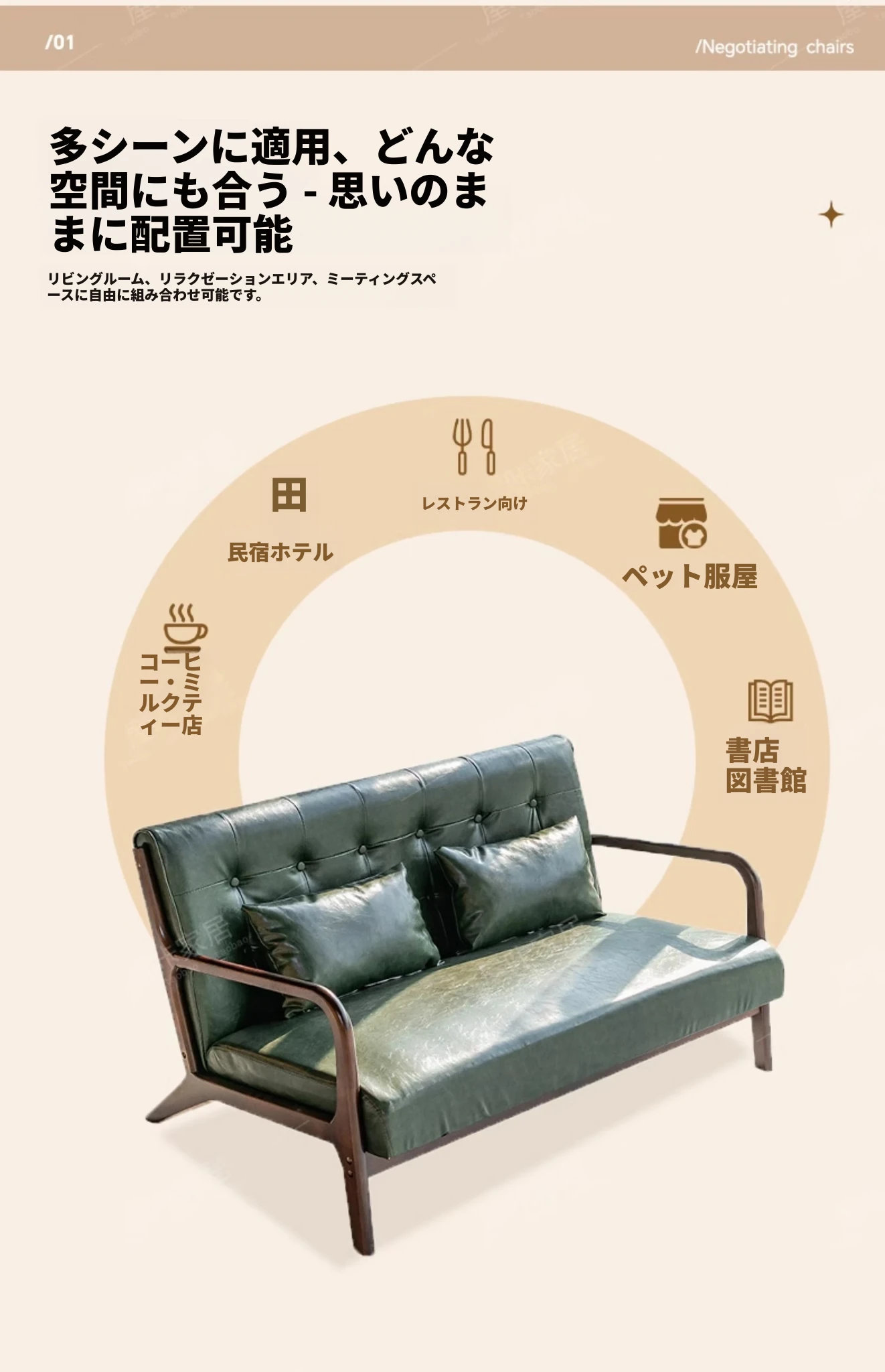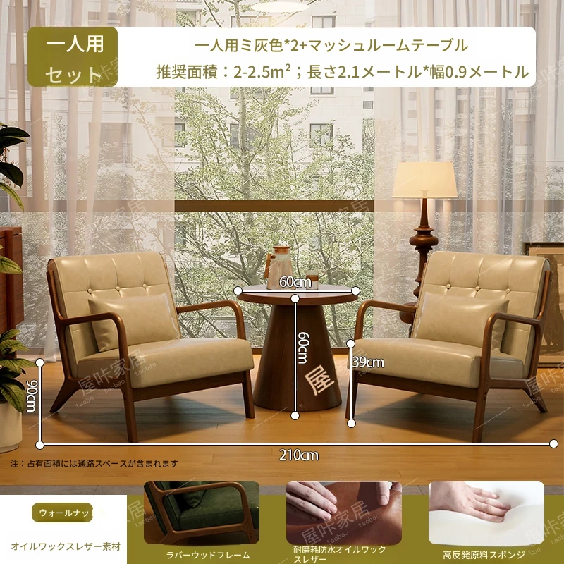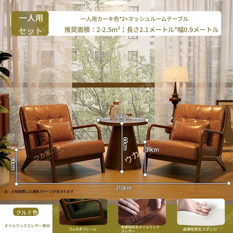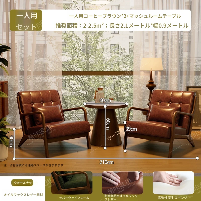 【防水オイルワックスレザー】コーヒー色*2+マッシュルームテーブル
