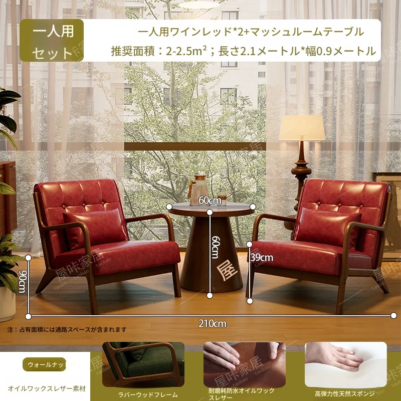 【防水オイルワックスレザー】ワインレッド*2+マッシュルームテーブル