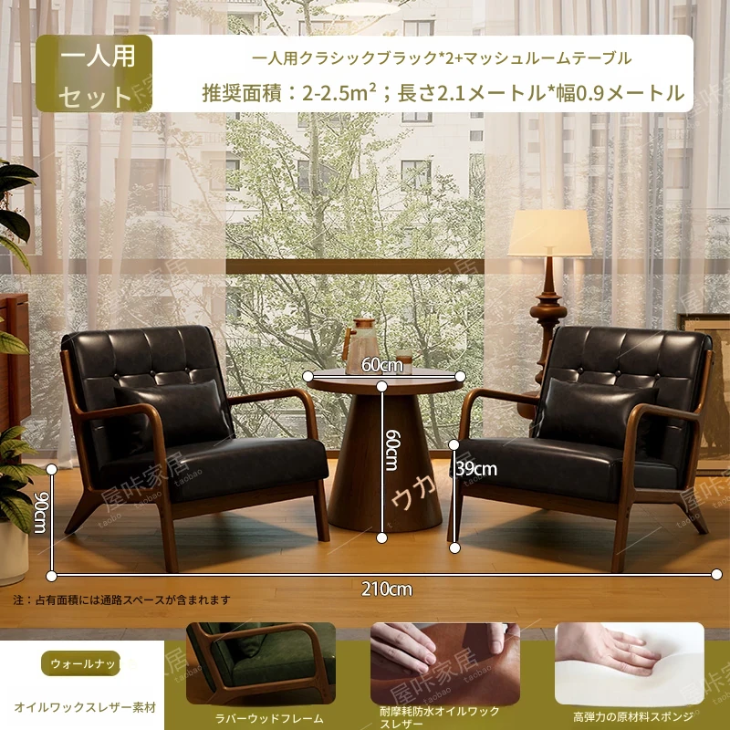 【防水オイルワックスレザー】クラシックブラック*2+マッシュルームテーブル