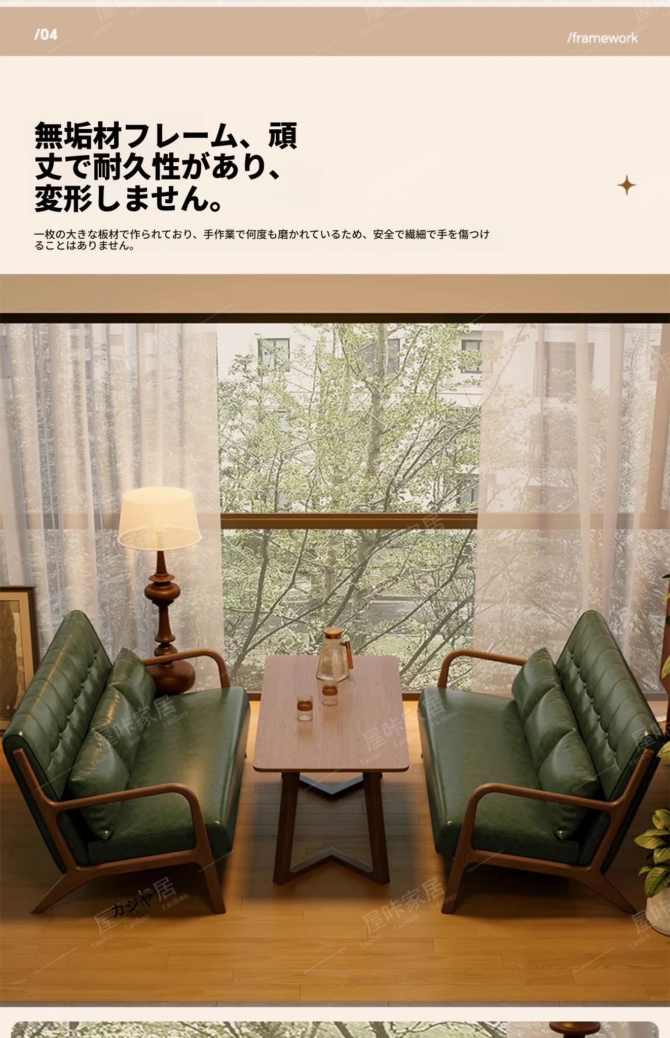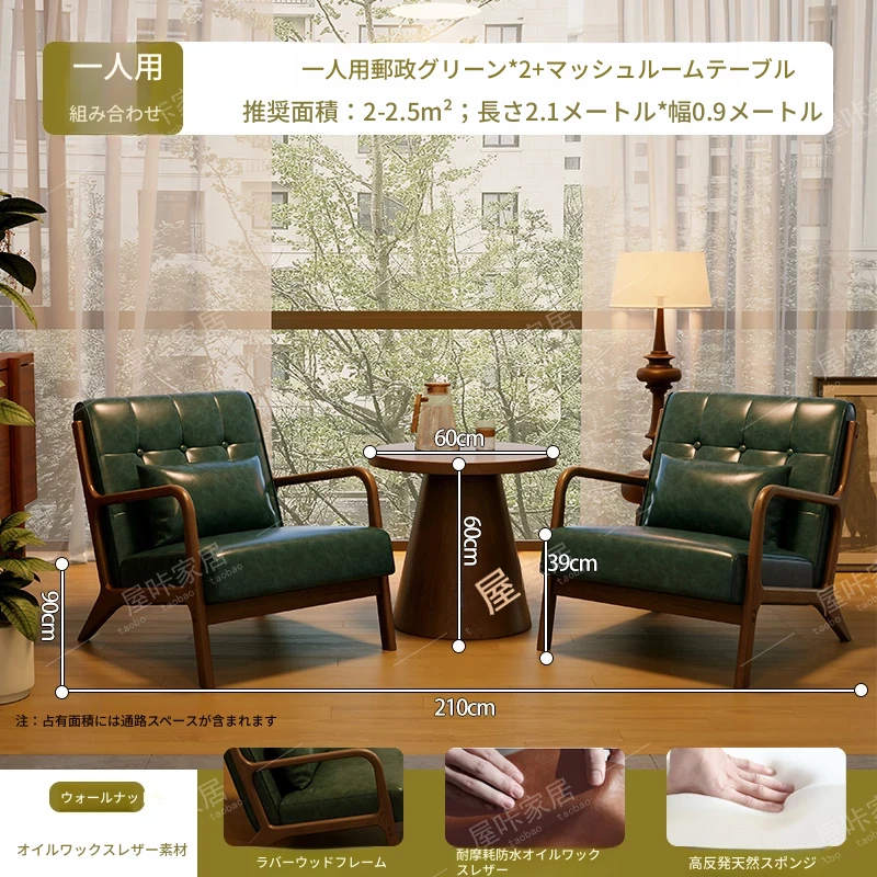 【防水オイルワックスレザー】モスグリーン*2+マッシュルームテーブル