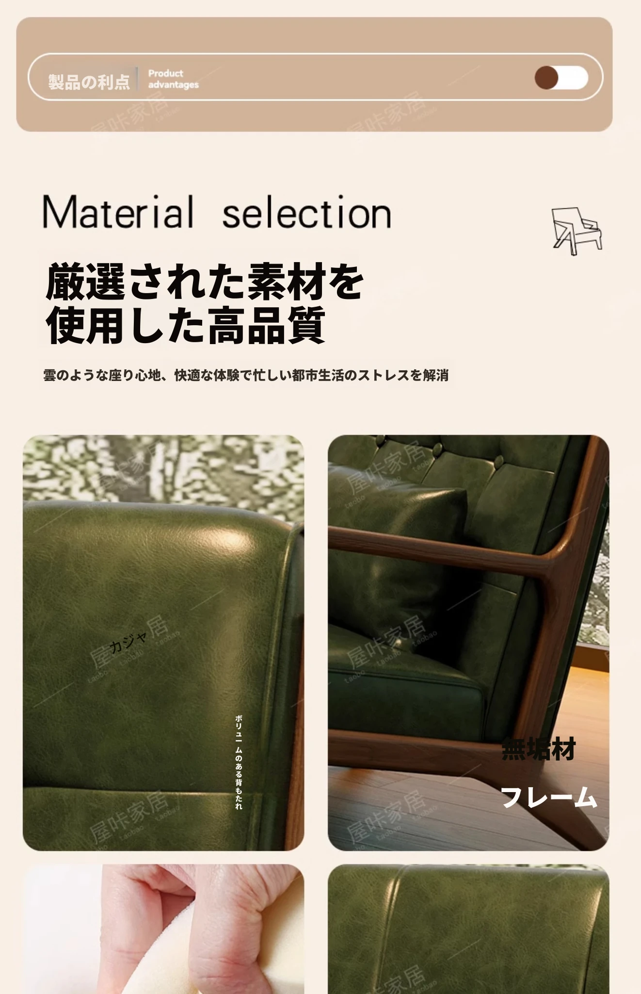 単椅子カーキ色【防水オイルワックスレザー】