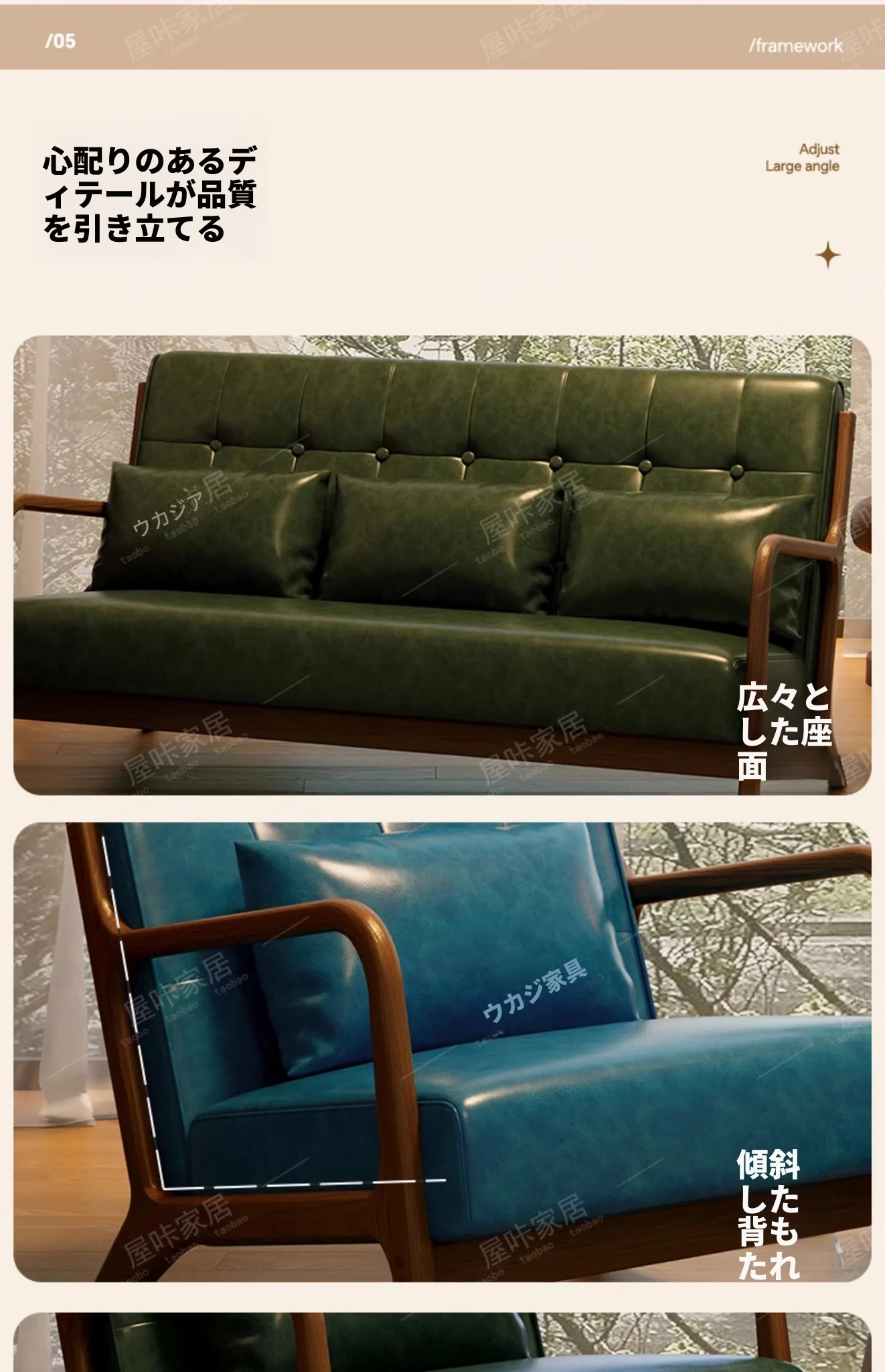 【防水オイルワックスレザー】カーキ色*2+マッシュルームテーブル