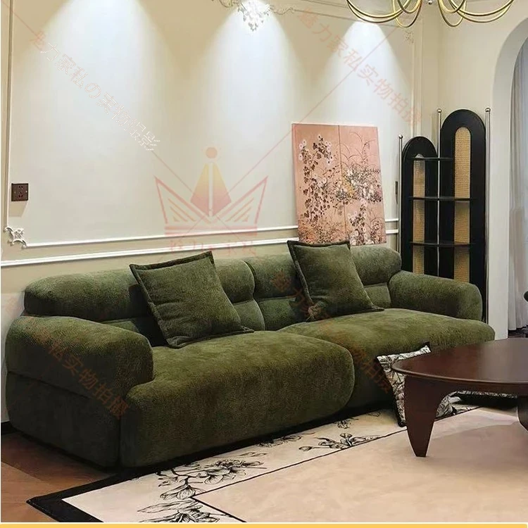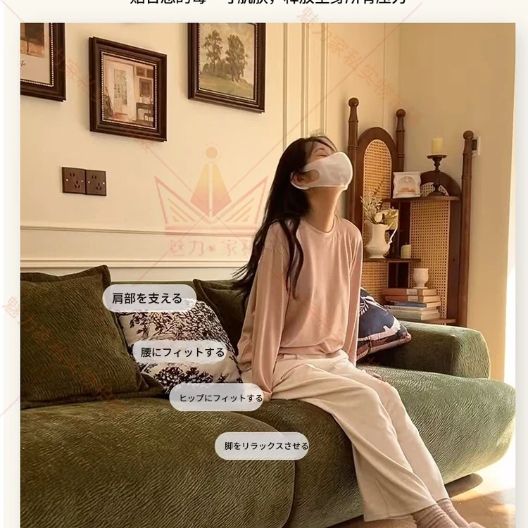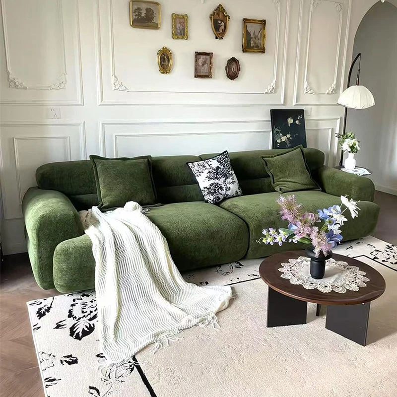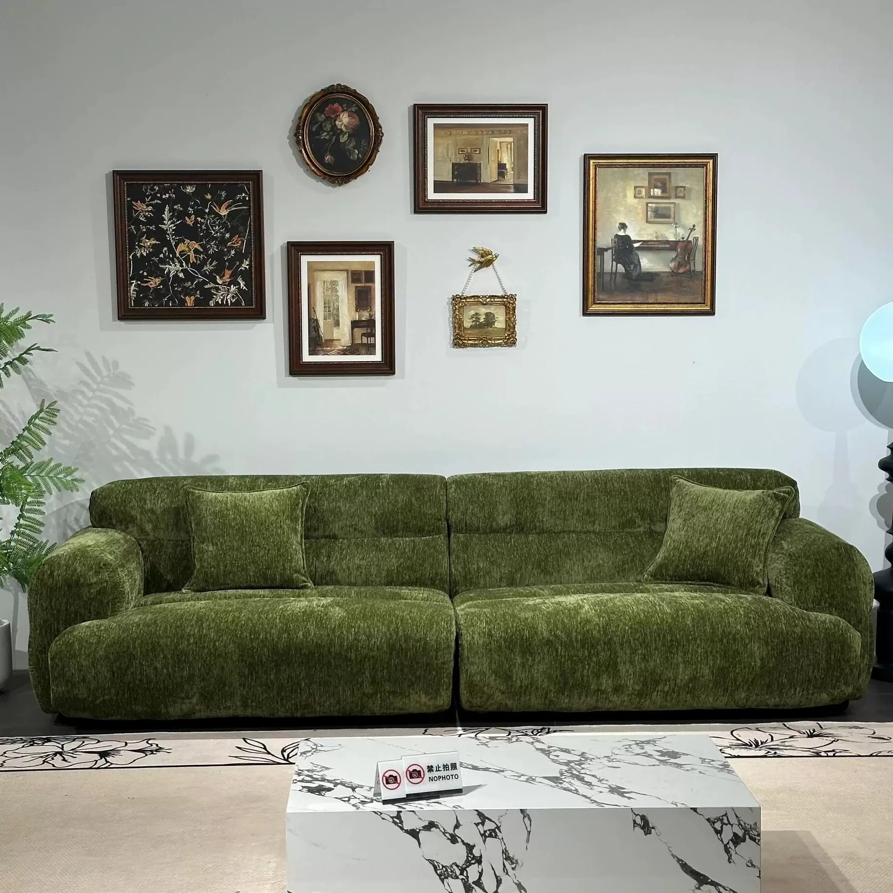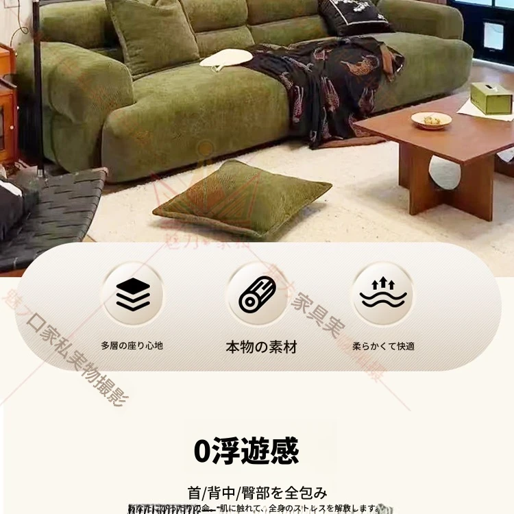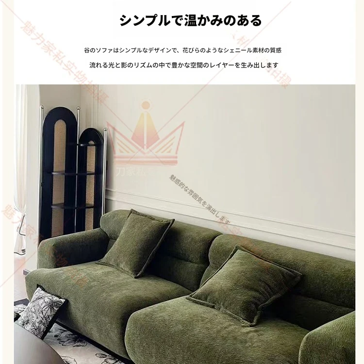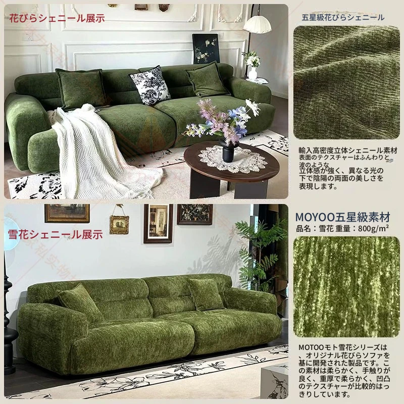フレンチビンテージ・バレー小型デザイナー中古スタイル グリーンシェニール 洗えるファブリックソファ - おしゃれで快適な空間を演出!