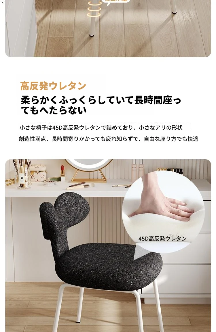 クジラ型メイクアップスツール|ラグジュアリーなデザインで、寝室をおしゃれに演出!コンパクトサイズで小さなお部屋にもぴったり。高級感あふれる化粧椅子で、毎日のメイクタイムを特別なひとときに。